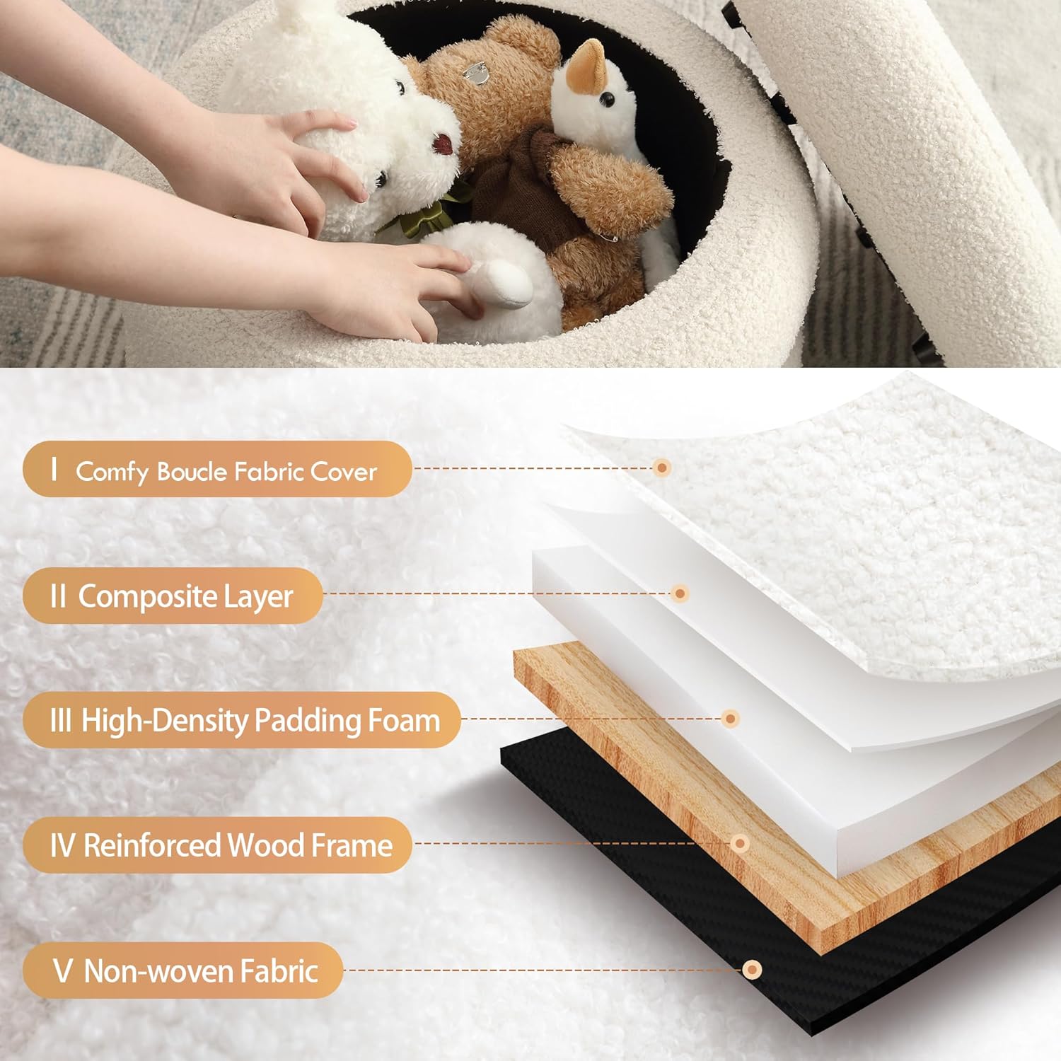 • [Selected Fabric] The Sherpa classic bench's better boucle upholstery makes it cozy to the touch. Comfort and support are provided by a sturdy, produced wooden board and a highdensity foam filling. Your room will look brighter and more inviting with this adorable and cozy storage ottoman stool. Basic, contemporary style is simple and well-groomed.