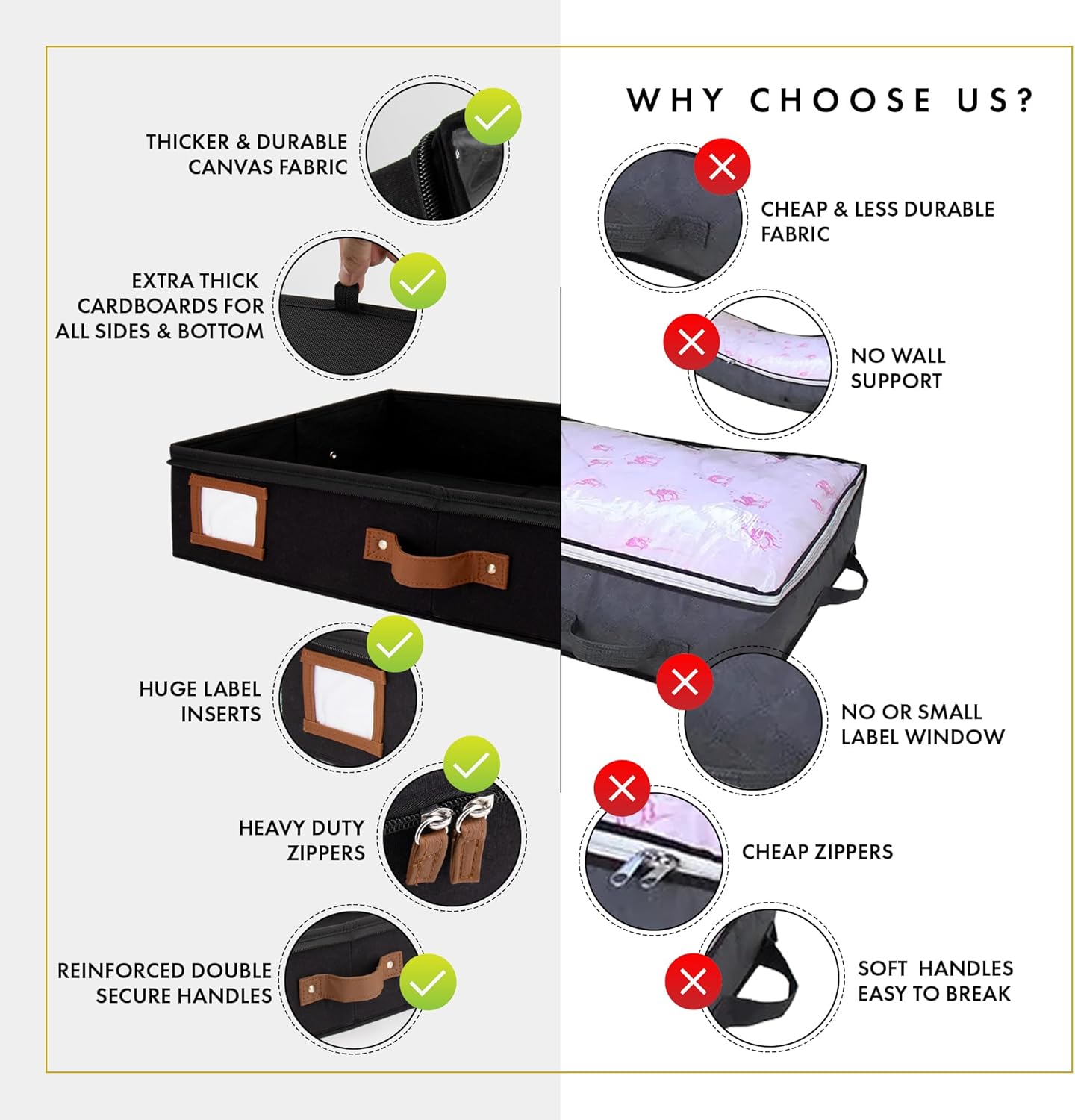 • ๐‡๐ž๐š๐ฏ๐ฒ ๐ƒ๐ฎ๐ญ๐ฒ ๐™๐ข๐ฉ๐ฉ๐ž๐ซ ๐‚๐ฅ๐จ๐ฌ๐ฎ๐ซ๐ž: Committed to safety and organization, our under bed flat storage boxes are precisely tailored. The zipper of our storage containers for under the bed ensures that the items inside are protected from dust and other elements that can cause damage. Our under bed storage with lid are pusposely designed with durability and strength making it ideal for flat clothing storage that require frequent opening and closing, or those that carry heavy loads.