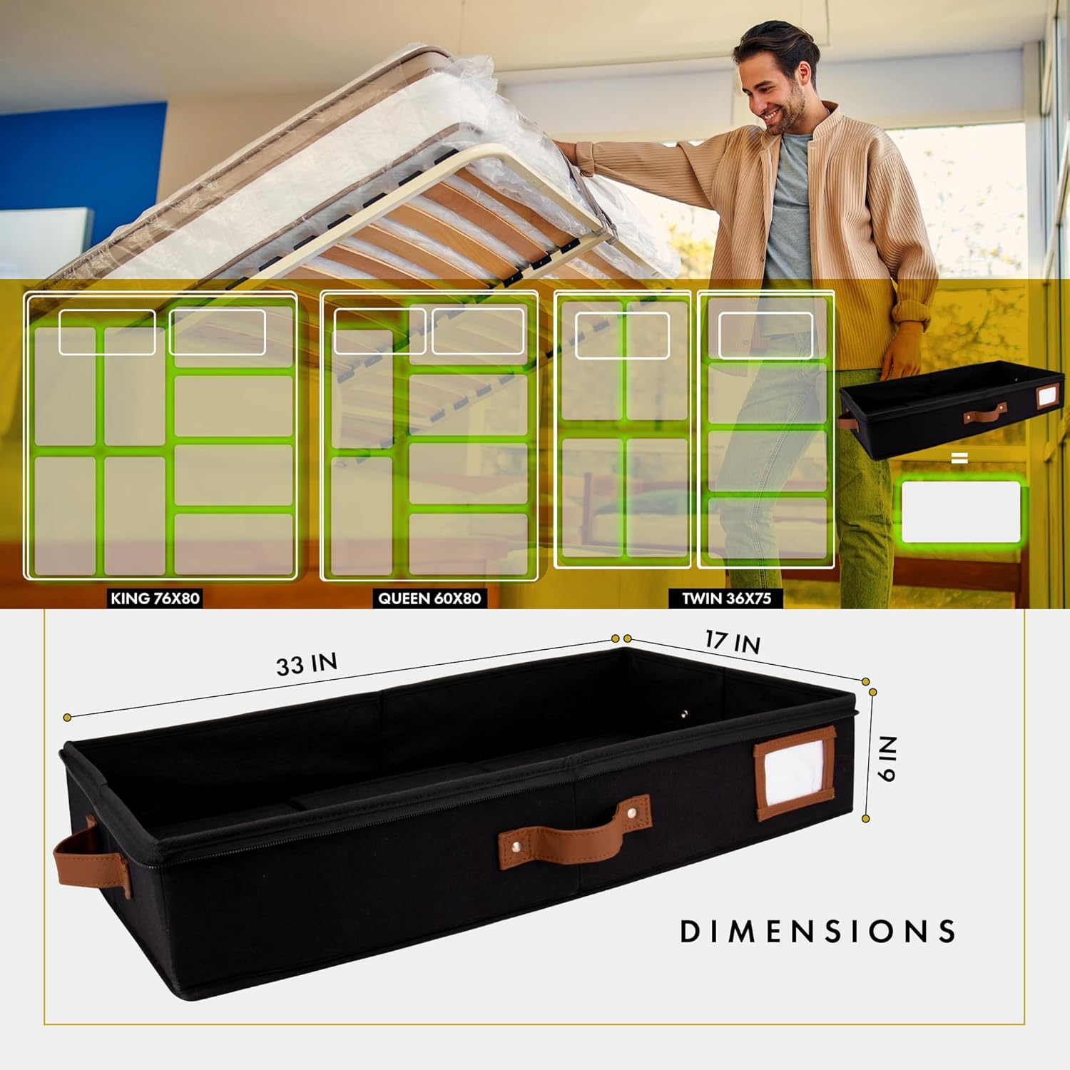 • ๐’๐ฎ๐ฉ๐ž๐ซ๐ข๐จ๐ซ ๐‚๐š๐ง๐ฏ๐š๐ฌ & ๐Œ๐š๐ญ๐ž๐ซ๐ข๐š๐ฅ: Made from premium quality canvas fabric, our 33x17x6" Under Bed Storage Containers With Lids are durable, sturdy, & carefully designed to hold large quantities of clothes, blankets, shoes, & various bed accessories. These under bed storage dorm drawers are designed to fit perfectly under your bed for efficient bed room organization and storage, making it an under bed organizer that will easily blend into your home's aesthetic style.