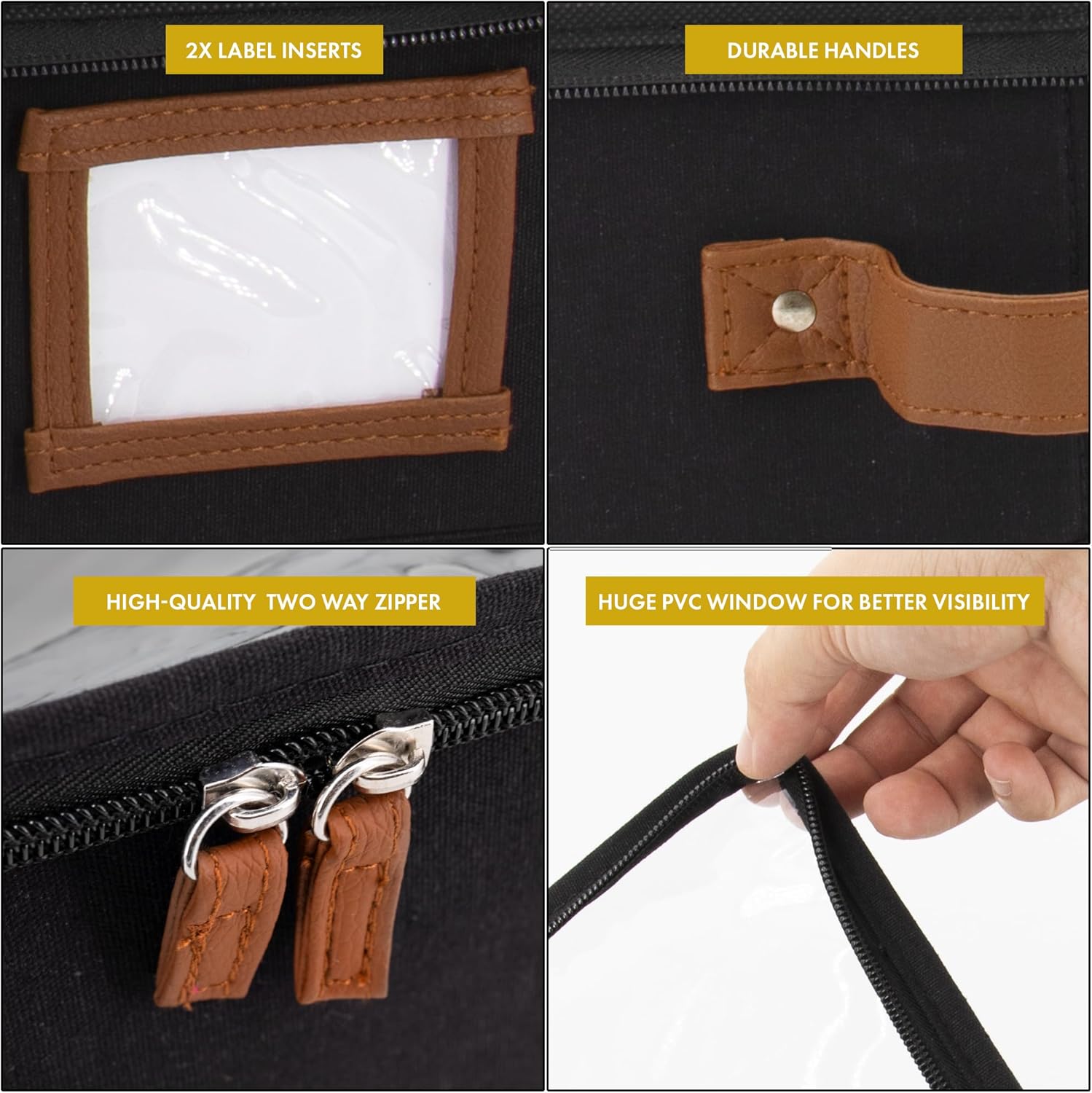 • ๐ƒ๐จ๐ฎ๐›๐ฅ๐ž ๐’๐ž๐œ๐ฎ๐ซ๐ž ๐‡๐š๐ง๐๐ฅ๐ž๐ฌ ๐–๐ข๐ญ๐ก ๐‡๐ž๐š๐ฏ๐ฒ ๐ƒ๐ฎ๐ญ๐ฒ ๐™๐ข๐ฉ๐ฉ๐ž๐ซ ๐‚๐ฅ๐จ๐ฌ๐ฎ๐ซ๐ž: Our storage boxes with lids for organizing comes with 3 fortified handles for secure lifting & powerful zipper for durable sealing. The handles of these low profile underbed storage are precisely stitched inside out, with additional rivets to hold up to 35 lbs for heavy-duty use making it ideal to use as flat clothing storage. To enhance safety, our under bed flat storage boxes are expertly tailored to keep your clothes protected.