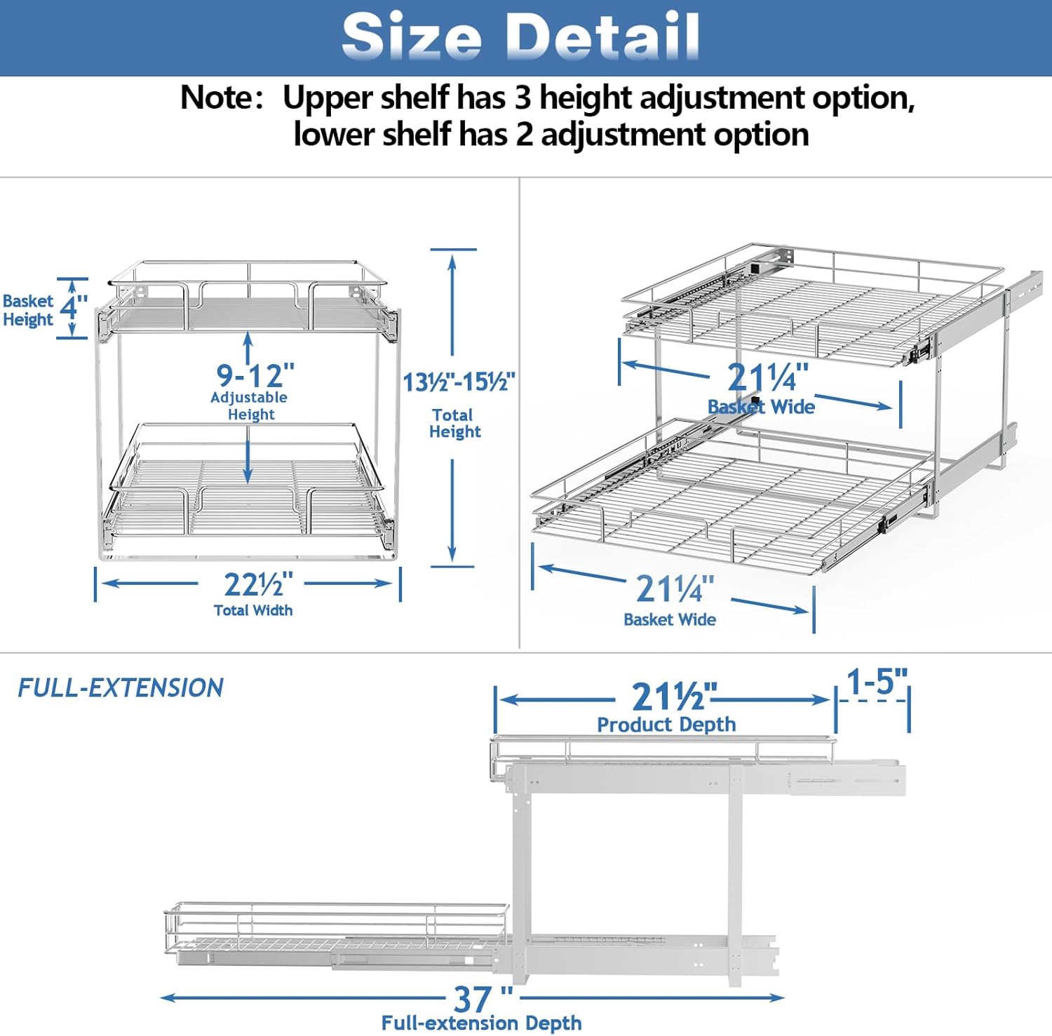 • 【Item Size】Organizer dimensions:22½"W x 21½"D x 15"H. Fits 24" cabinet openings and larger. Please measure your cabinet opening do not include the hinge width, just measure from hinge to opposite side. You can contact seller via Amazon Messages to make sure if the size fit your cabinet.