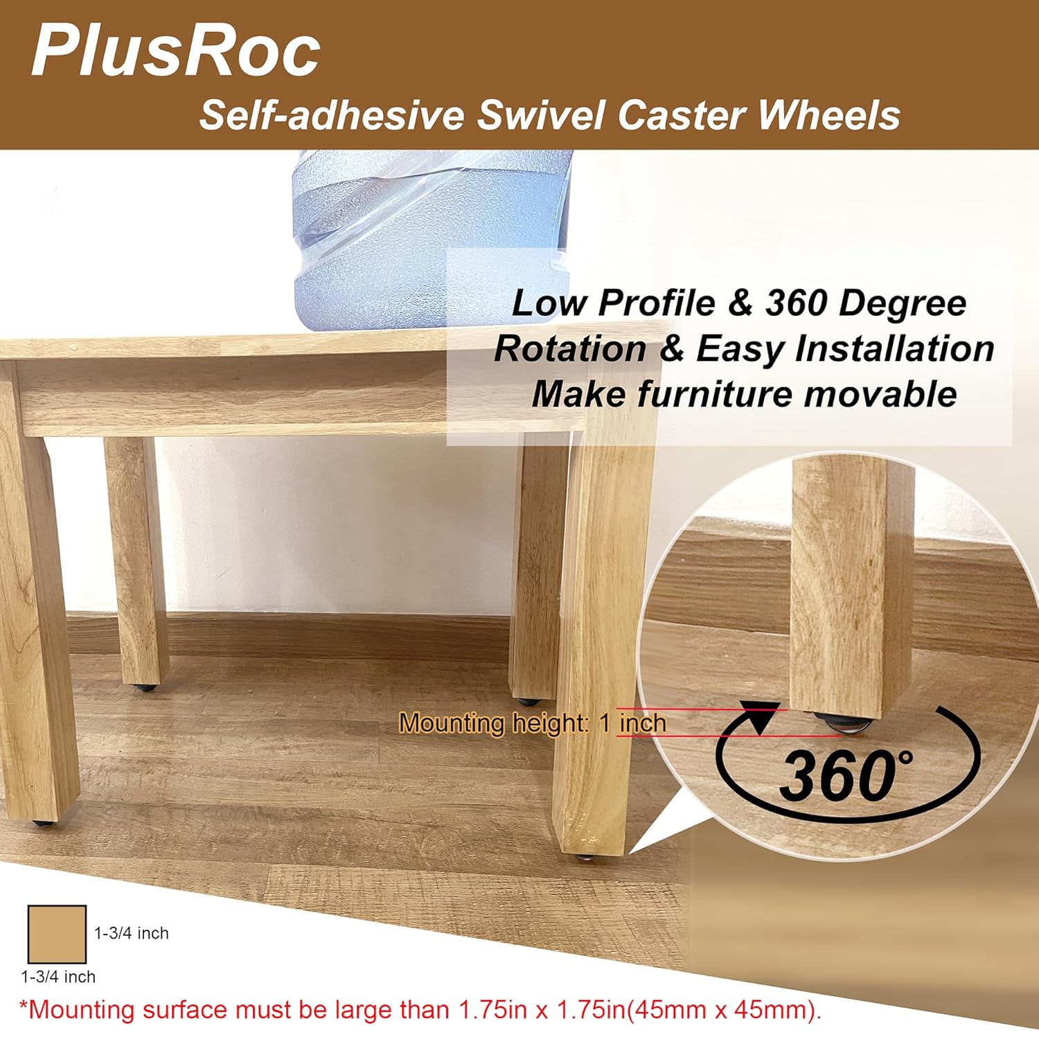 • 【Tips】1.These caster rollers only work on smooth and hard surfaces, may leave tracks on wood surfaces.2.We suggest you use screws to install casters wheels for heavy objects. Plusroc owns this wheel design with pending patent.