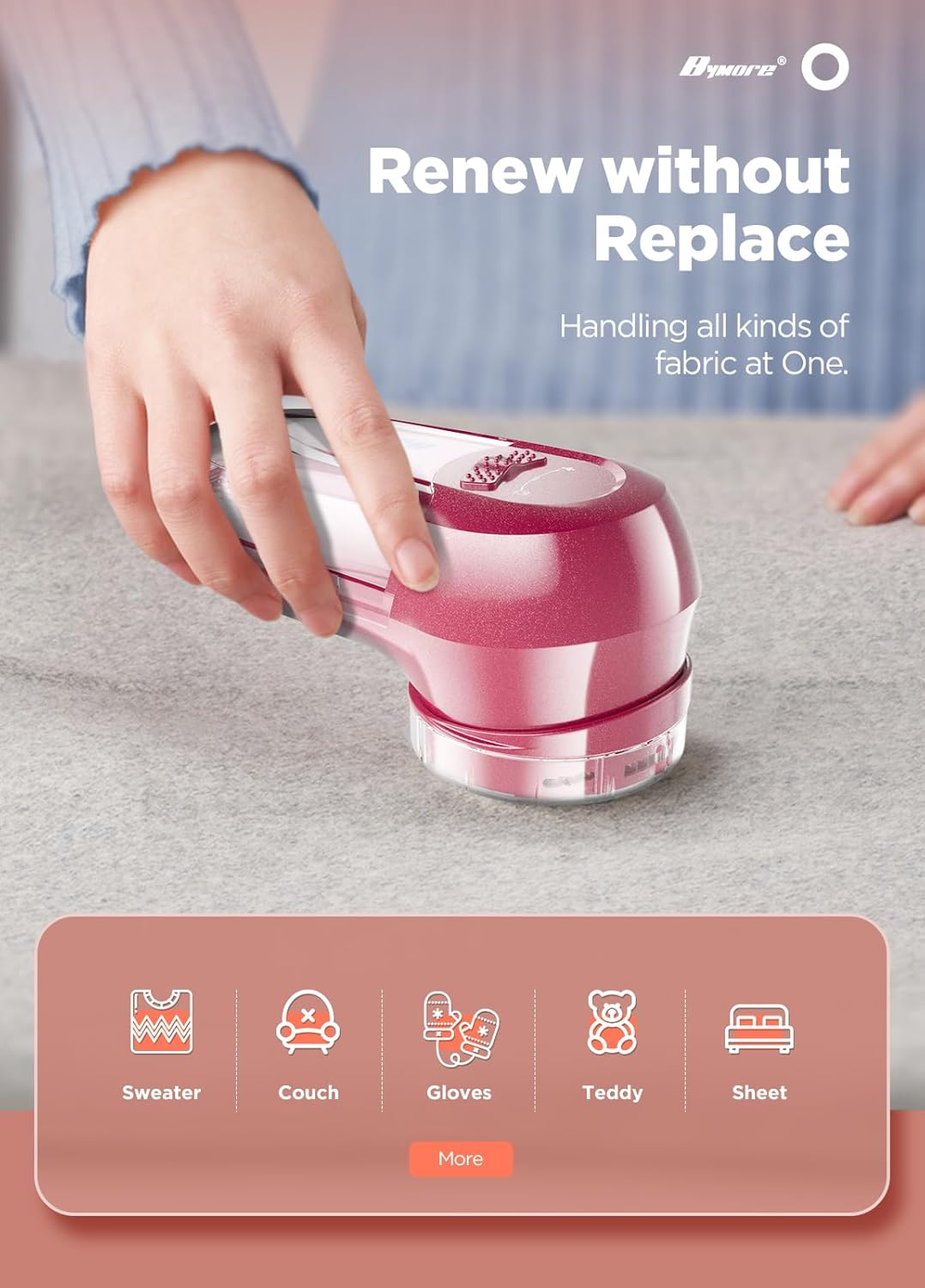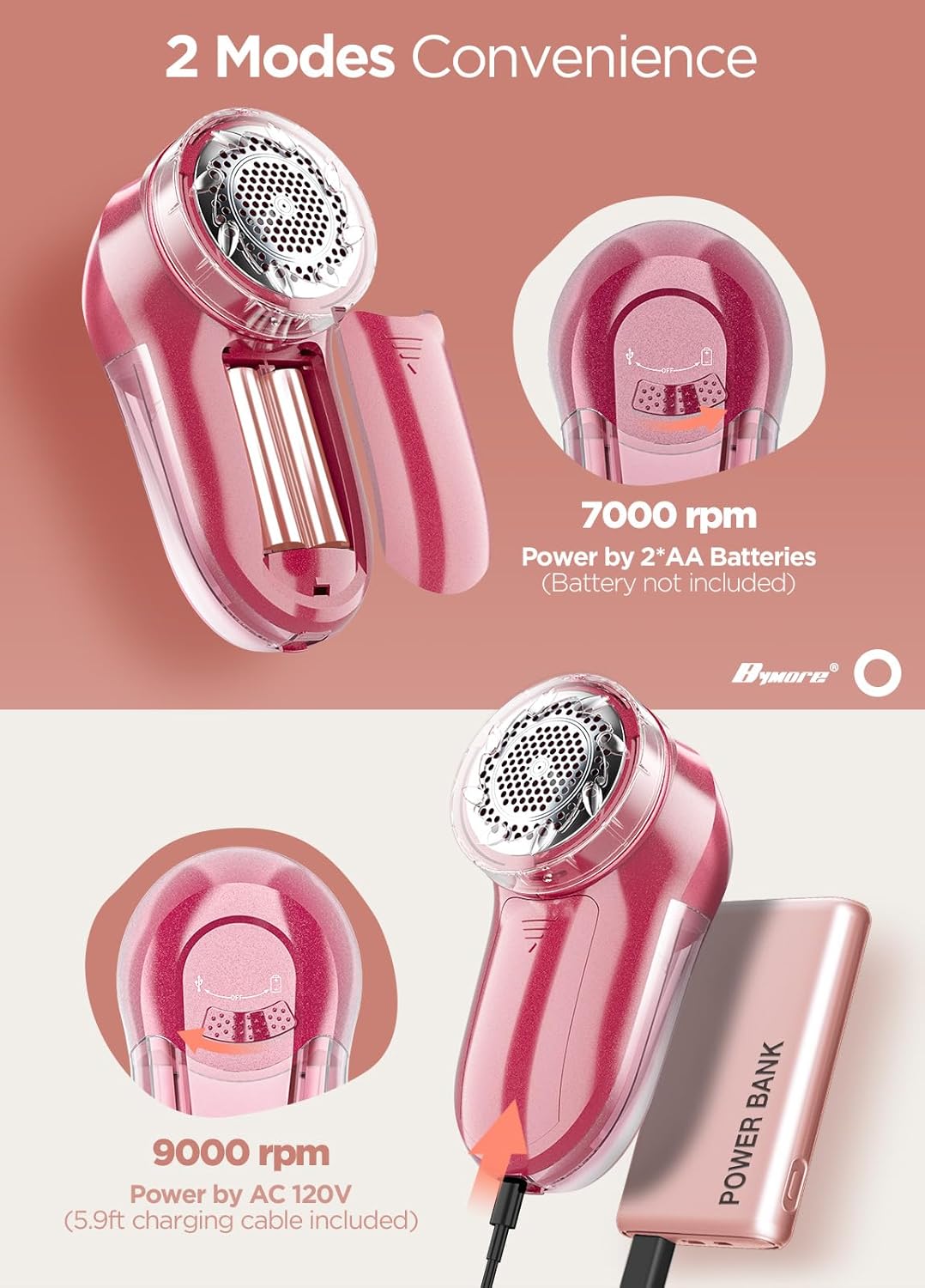 Fabric Shaver, Lint Remover, Bymore Lint Shaver Defuzzer Sweater Shaver for Clothes and Furniture AC Adapter or Battery Operated Pill Fuzz Remover (Bright Red)