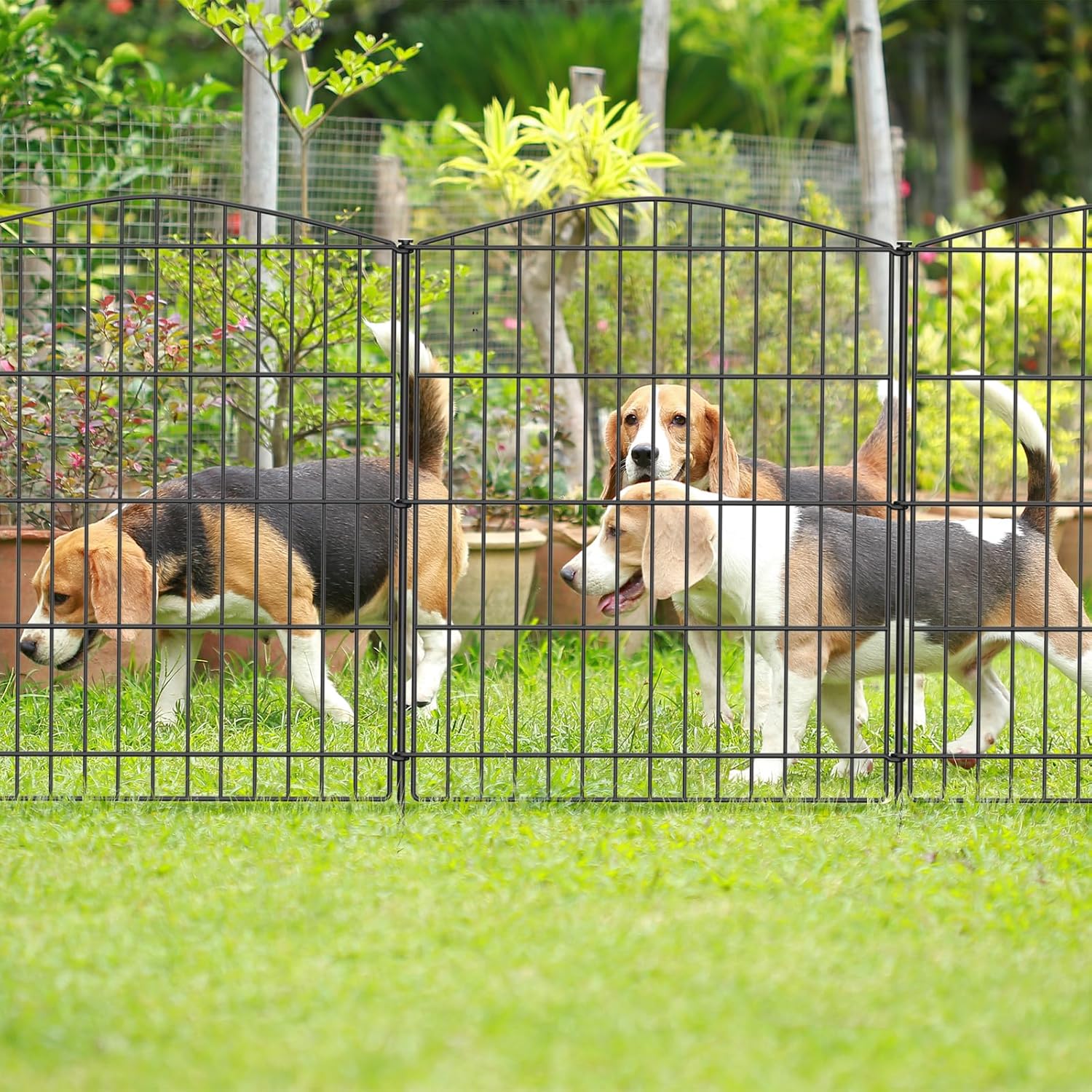 • Multi-Purpose Use:This decorative garden fence can be used as a temporary fence or animal barrier fence, and can be set up around plants, trees, yard landscaping, vegetables, as a plant protection fence, garden landscape fence, flower bed fence, etc. Can also be used as an outdoor dog playpen to create a pet safe play area, or as a pet playpen to keep small animals from escaping or entering and ruining your garden. Can also be used for driveway, walkway, garden border decoration