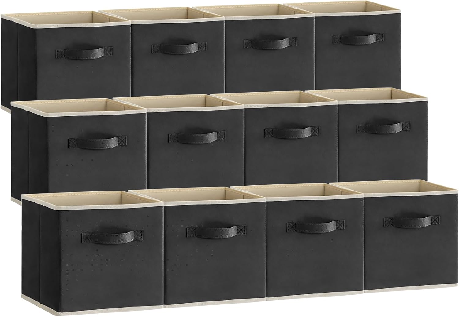 Lifewit 12 Packs Storage Cubes, 11 Inch Cube Storage Bins, Foldable Decorative Fabric Storage Baskets for Organizing Home Organizers with Handles for Shelves, Closet, Black