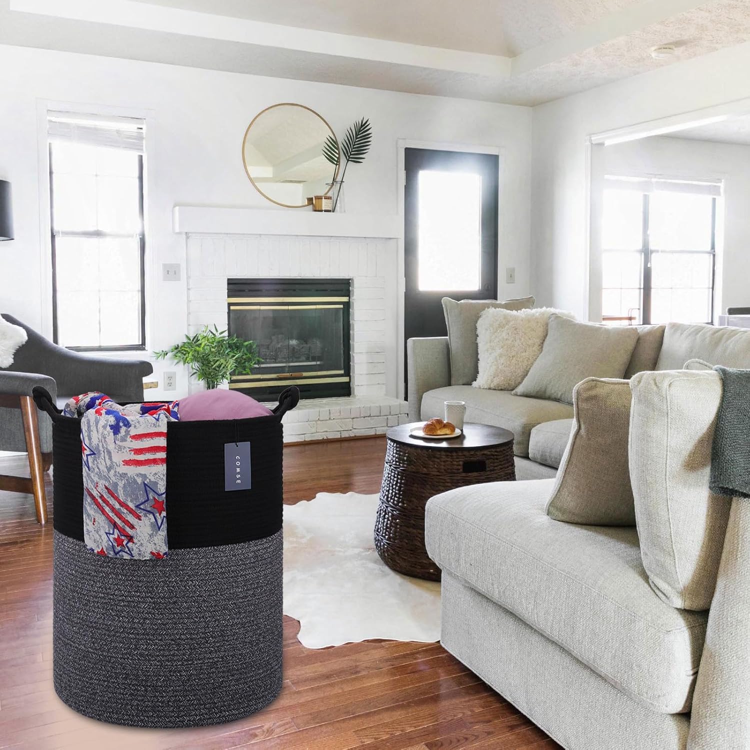 • 【Large Size】15.7" x 21.7", Tall blanket basket which is perfect for throw pillows, blankets, toys, clothing, Comforter or Cushions. Whether it is helping your child develop clean living habits, or as a decorative basket for your friends. With the appearances and practicality, we believe COMSE cotton storage basket is perfect as a gift for Birthdays, Festival.