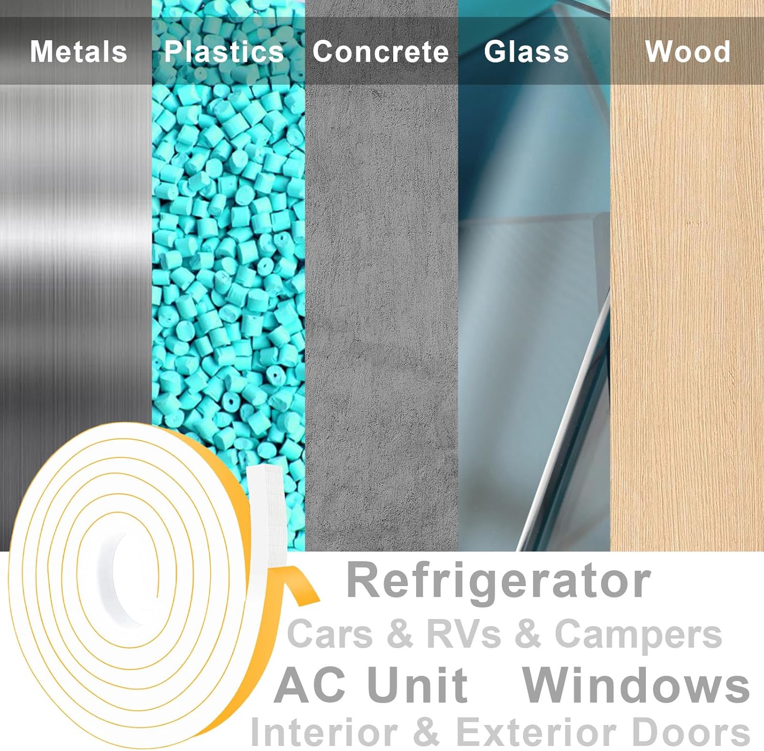 • 🟠WIDE APPLICATION-Trisiki's rubber weather tape is a tough, durable self-stick tape with minimal compression and can help prevent rattles, vibrations and squeaks. It's widely used as a weatherstrip, or as a gasket or to cushion and stabilize major appliances, such as doors, windows, furniture, electrical cabinets, speakers, toys, handicrafts, sports equipment, vents, air conditioners, plumbing, hvac. Plus, on cars, trucks and boats