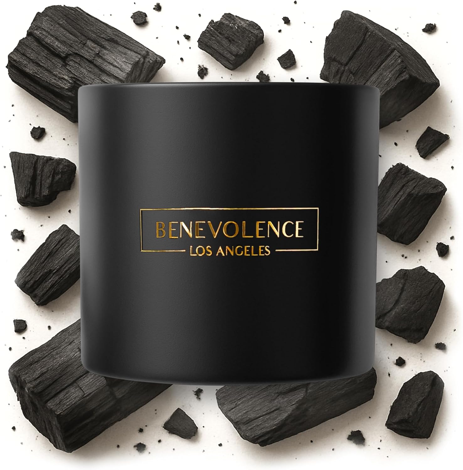 Benevolence LA 3 Wick Candle, Charcoal Large Scented Candle | Soy Candles | Gifts for Women and Men | Home Fragrance | Aromatherapy | Bathroom Freshener 14.5 Oz, 45 Hour Burn