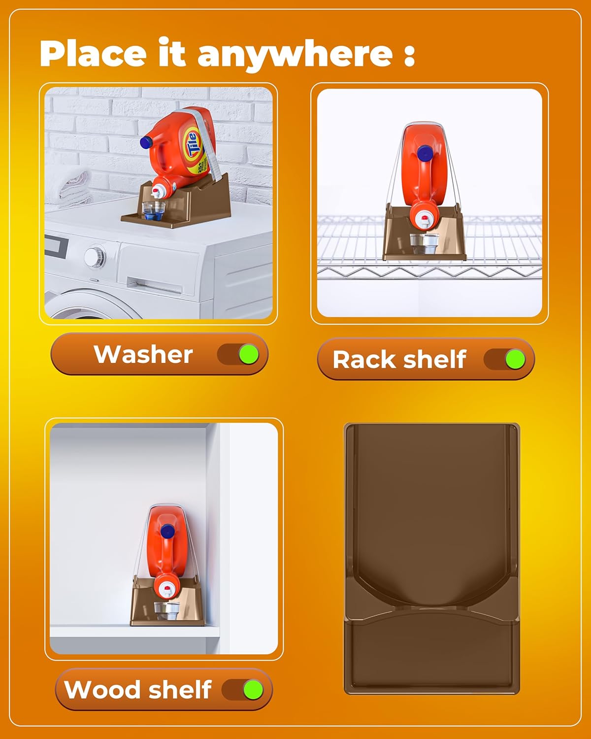 • [Safe Attachment:] The laundry detergent shelf or holder features a secure strap that firmly attaches and ensures your detergent bottle stays in place and minimizing the risk of accidental falls and spills.