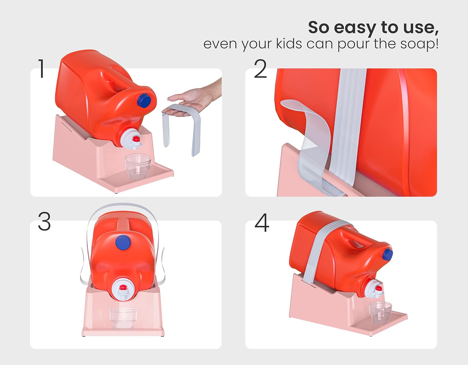 • [Effortless Soap Dispensing:] The angled design of our laundry soap organizer allows for easy soap pouring without the need to tilt or lift heavy detergent bottles, saving you time and effort during laundry.