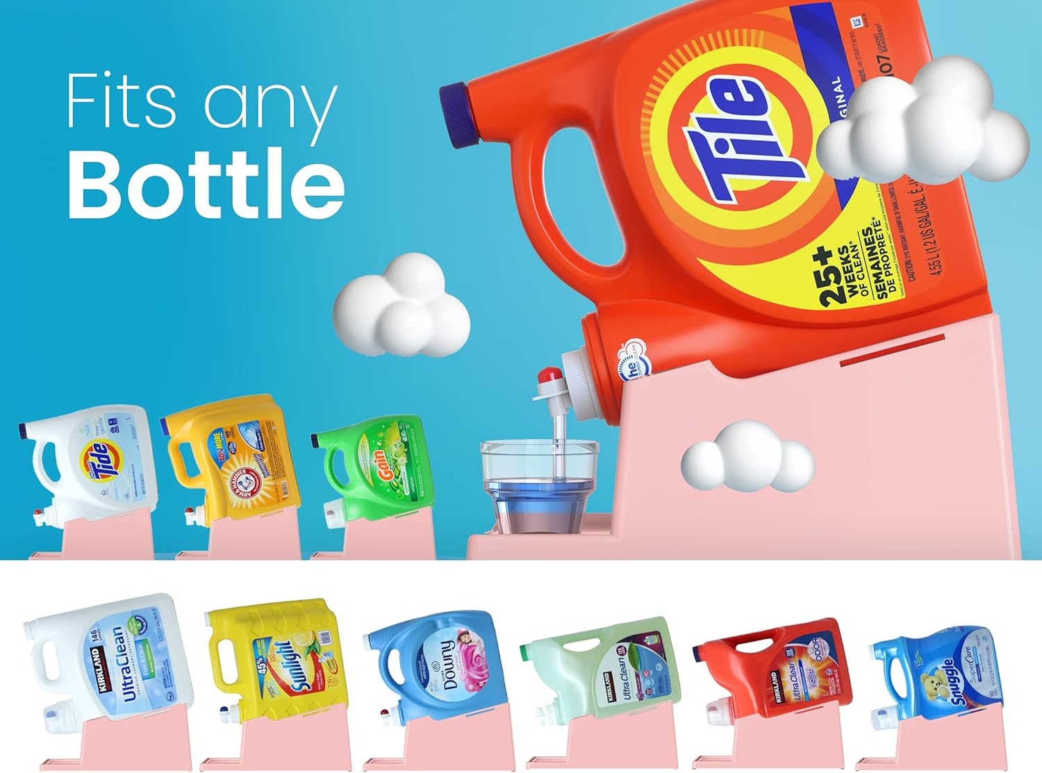 • [Versatile Fit:] The liquid laundry detergent holder station's optimal size (7.9"L x 12.2"W x 5.5"H) accommodates various bottle sizes, providing a perfect fit for most detergent containers without taking up too much space. (Laundry Soap, Cup, and Bottles NOT Included)