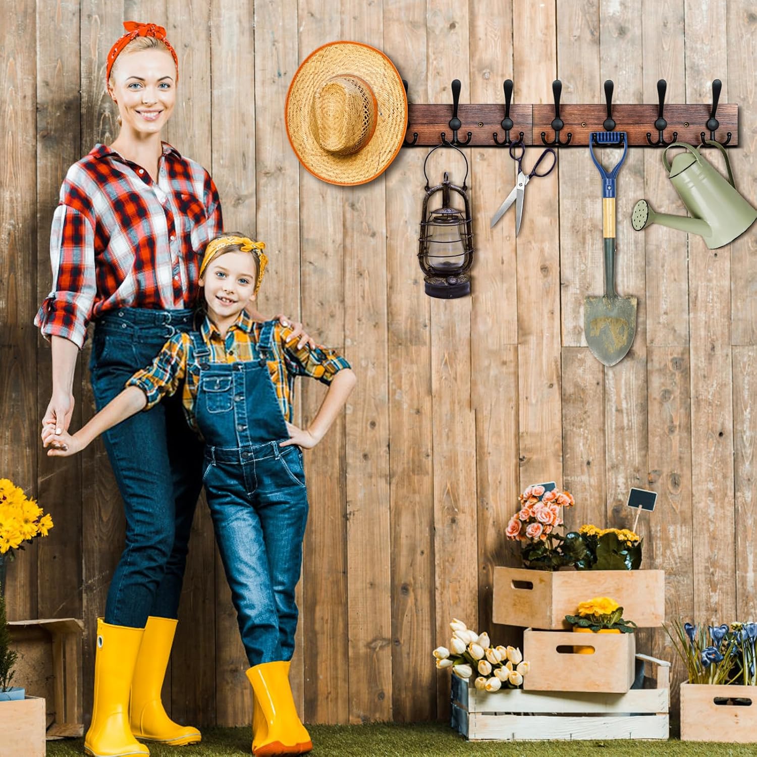 • Material - Made of rustic wood and aluminium alloy, each sturdy metal hooks can hold up to 25 lbs of weight