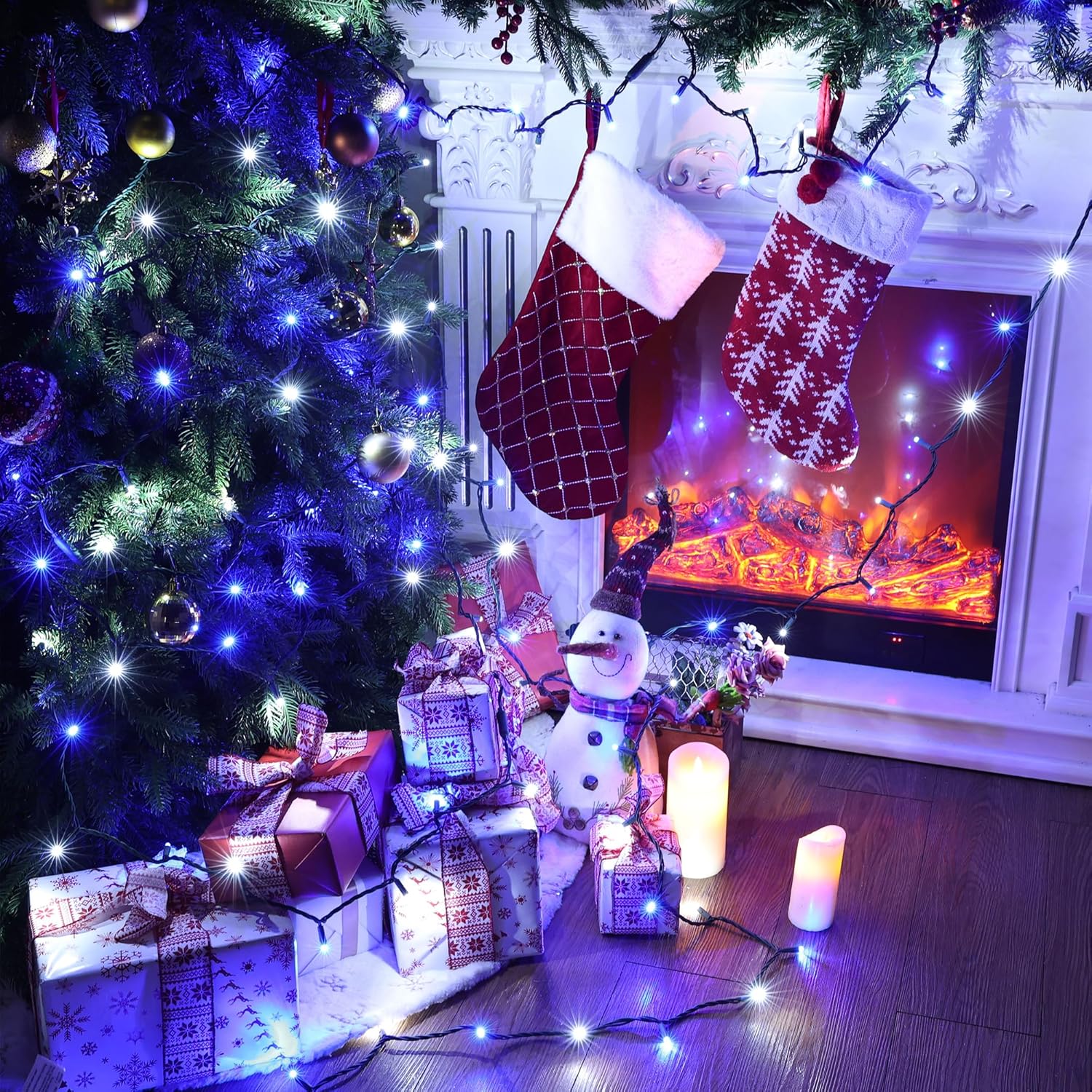 • UL Certified, Waterproof led Christmas Lights Outdoor: IP44 waterproof blue and white Xmas tree lights, UL Certified; approved for indoor/outdoor use. Ideal for indoor/ outdoor Christmas, tree, party and home decorations