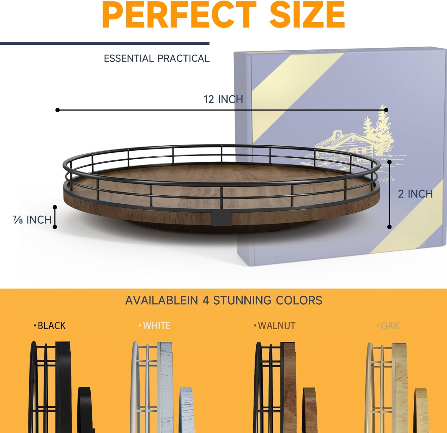• 𝐔𝐏𝐃𝐀𝐓𝐄 πƒπ„π’πˆπ†π:The base is large enough to hold a lot and heavy objects and successfully rotate. It is made of lovely oak wood that is strong with a sturdy metal rack to secure the items on the turntable. The turntable smoothly revolves all around making the items an easy reach. There is also included anti-slip pads on the bottom of the Lazy Susan, for extra surface protection.