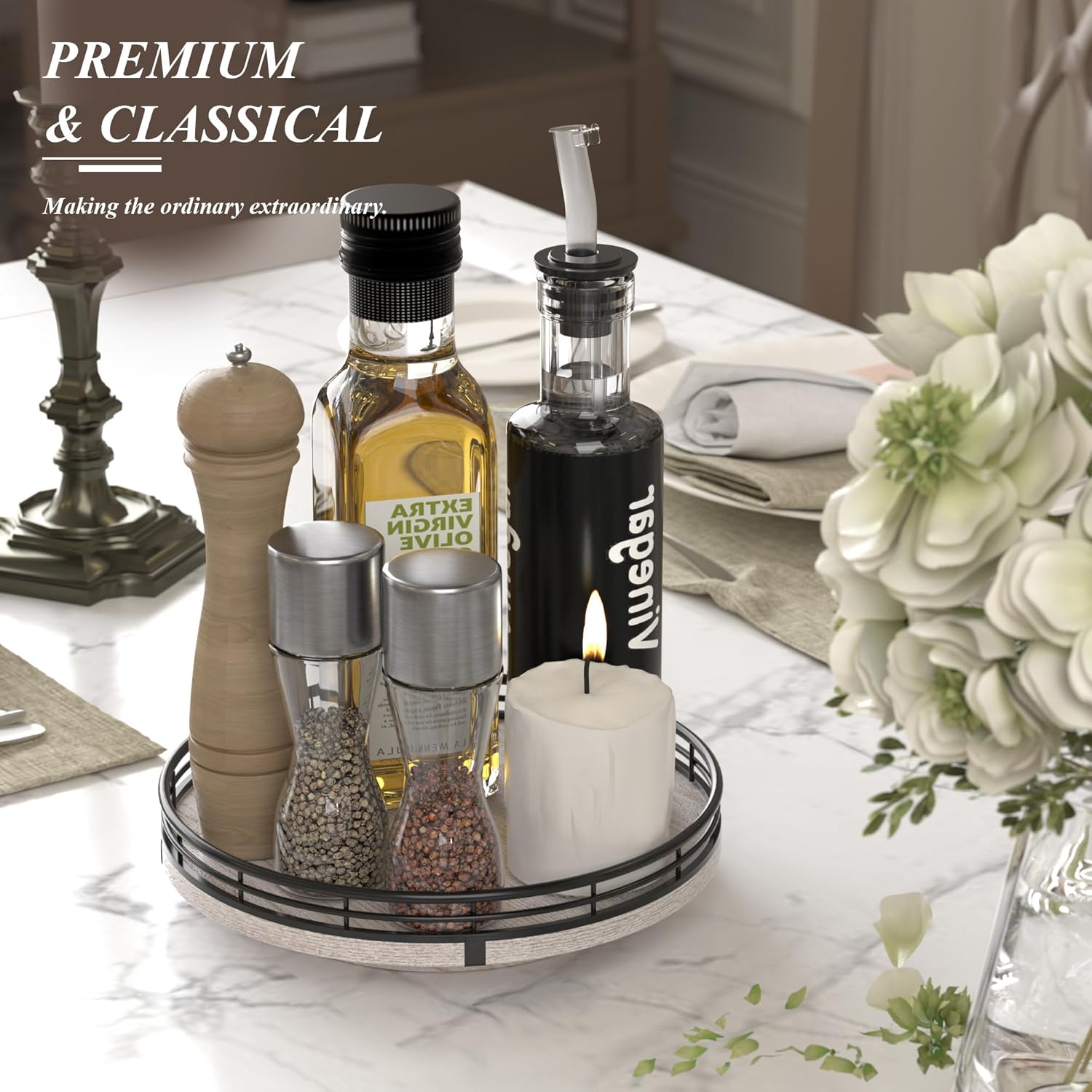 • ππ‘π„πŒπˆπ”πŒ πŒπ€π“π„π‘πˆπ€π‹: Our farmhouse lazy Susan made of natural ash wood veneer, sturdy, durable, and beautiful in texture. It is known for its durability, strength, and aesthetic, as well as it can handle heavy use and resist wear and tear. Widely used as coffee table decor, kitchen decor, centerpiece table decortations.