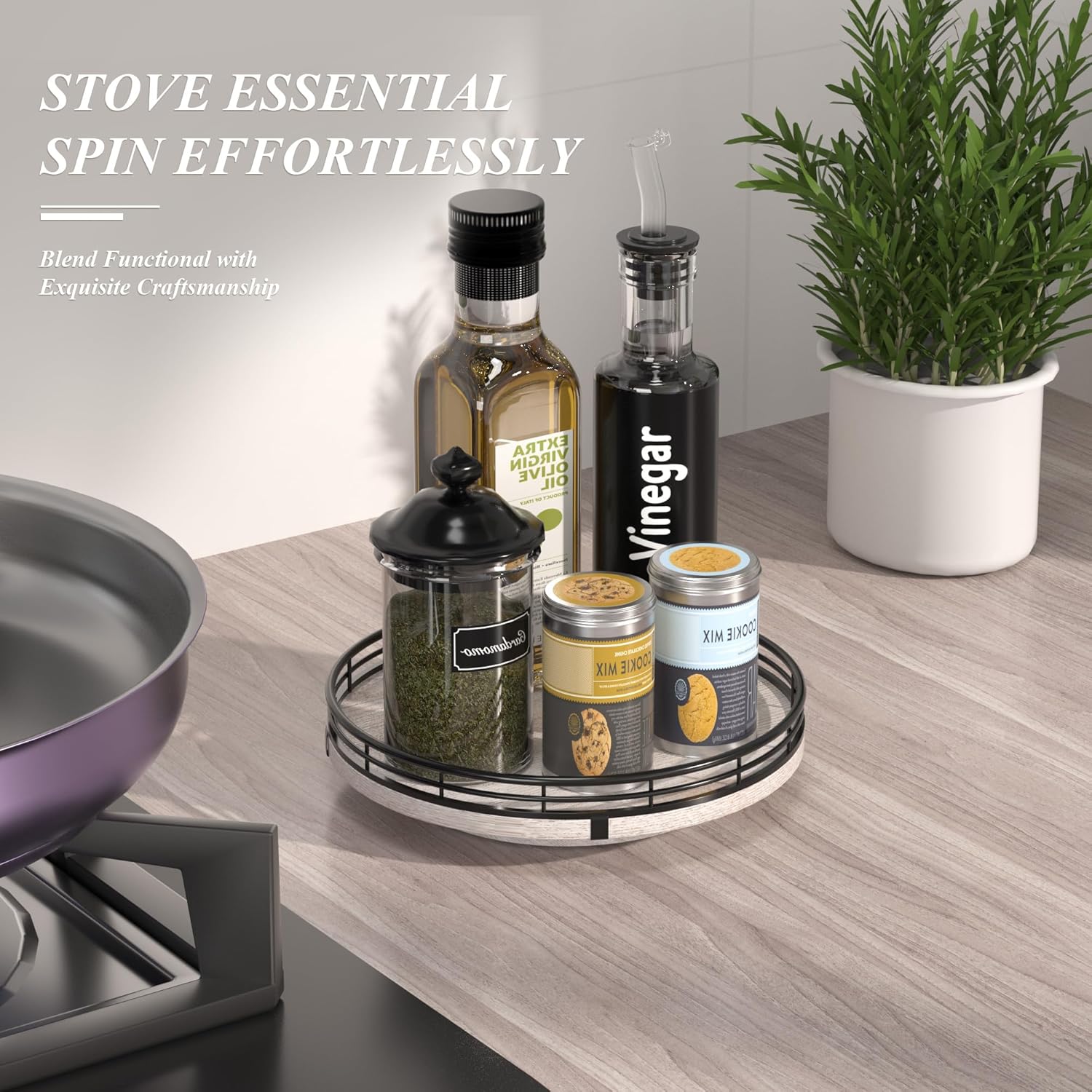 • πŸ‘πŸ”πŸŽΒ°π‘πŽπ“π€π“πˆππ†: The base is made of solid wood, and the spinning mechanism is made of steel ball bearings, which are well-built and allow for 360Β°smooth spinning. This Lazy Susan organizer is very attractive and very easy to use to keep your spices, condiments, and more organized and accessible.