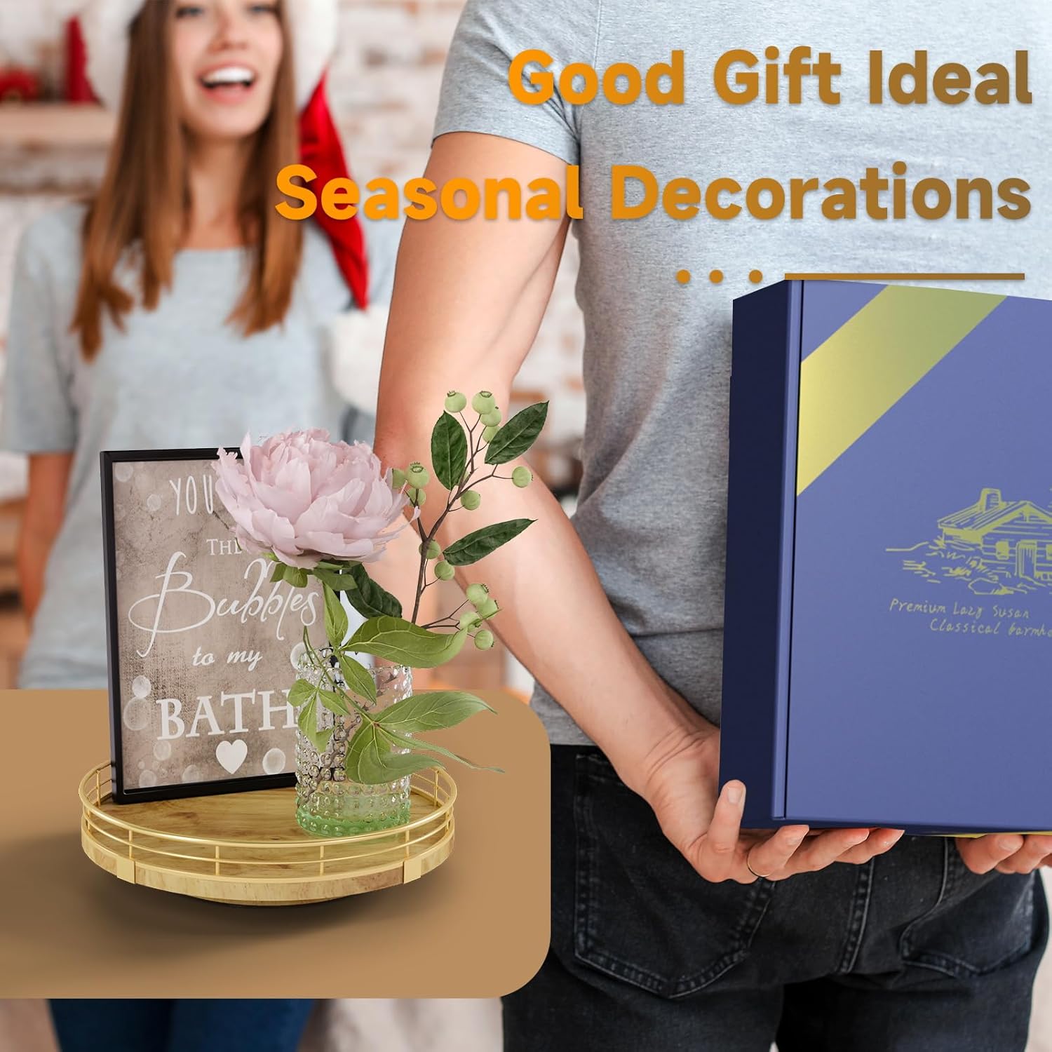 • ππ‘π„πŒπˆπ”πŒ πŒπ€π“π„π‘πˆπ€π‹: Our farmhouse lazy susan made of natural solid wood, sturdy, durable, and premium quality. It will be beautiful and a completely food-safe way to decorate your food. It is known for its durability, strength, and aesthetic, as well as it can handle heavy use and resist wear and tear.