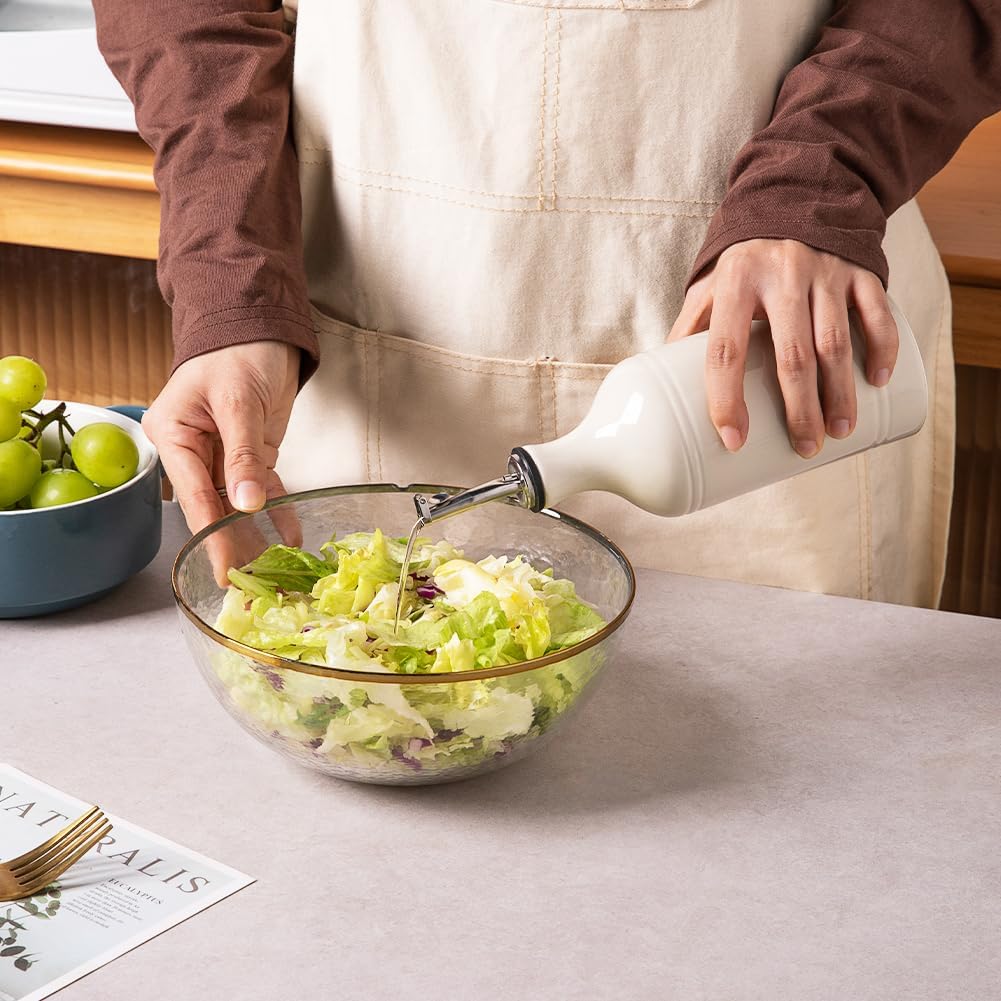 • Leak Proof & Keep Liquid Fresh - The bottle is made of durable ceramic that creates a smooth glaze. And the opaque porcelain bottle protects the oil from light and makes it last longer.