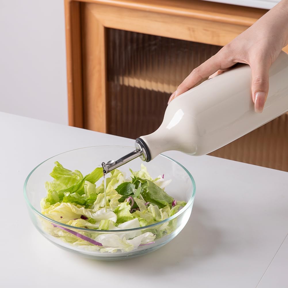 Sweejar Ceramic Olive Oil Dispenser Bottle, 20 Oz Relief Opaque Oil Cruet Protects Oil To Reduce Oxidation, Suitable for Storage Oil, Vinegar, Soy Sauce, Coffee Syrup, Liquids, Set of 1 (Beige)