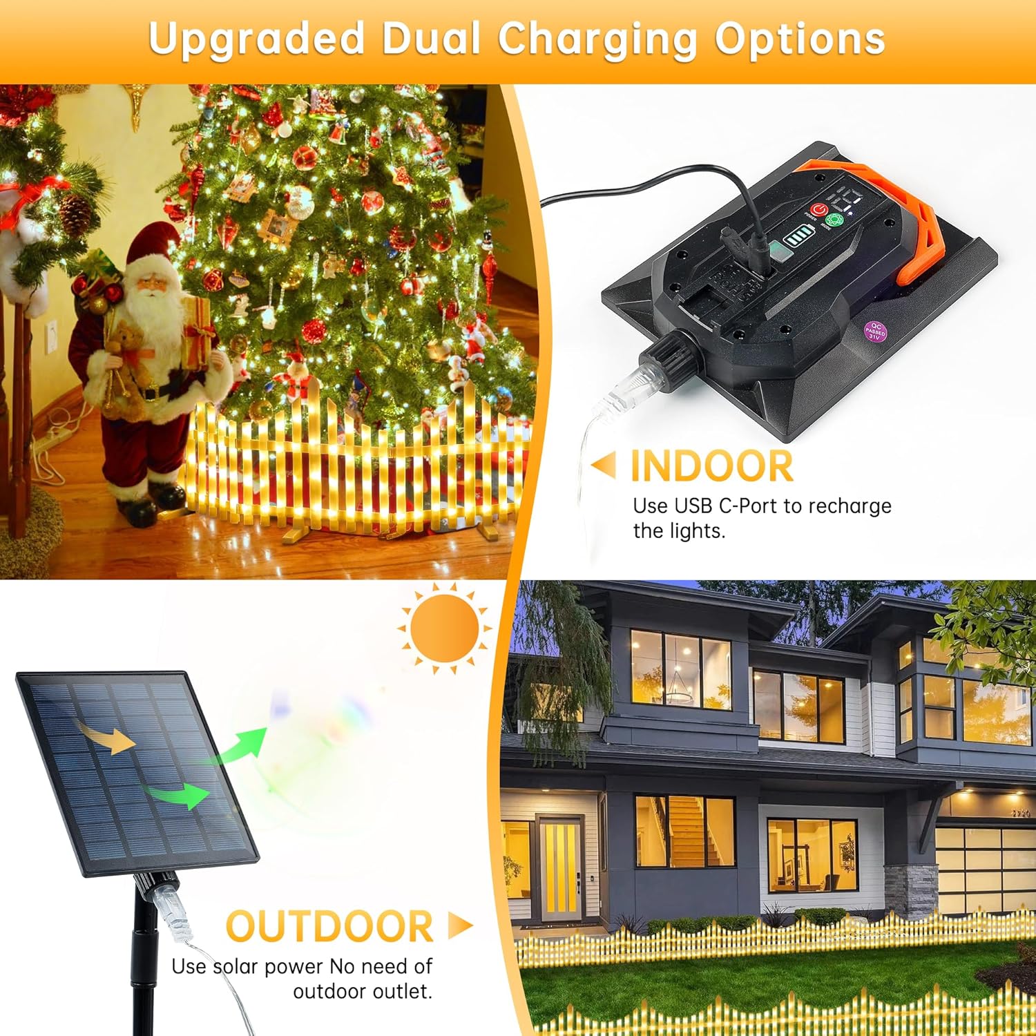 • 🌞【Larger Solar Panel&Remote】The solar outdoor fence lights come on automatically at dusk and turn off at dawn.Charging for 4-8 hrs can light up for 8-12 hrs.Remote controls the outdoor lights with 4 brightness levels,8 lighting modes,timer,and turns it on/off,which can bring you a magnetic visual light show at any time,make your home,yard or other place more attractive.Note:Please remove the insulation sheet before use.