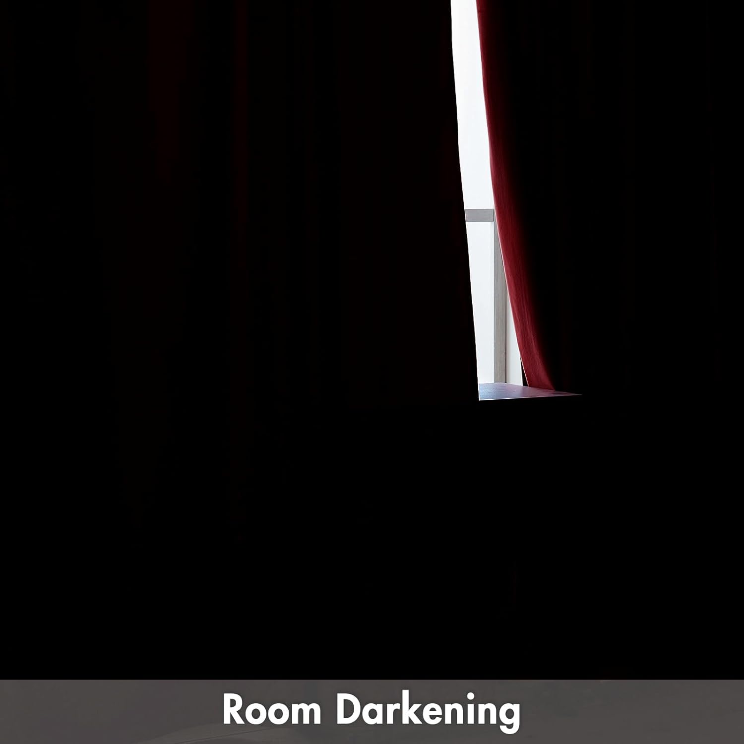 • FUNCTION: Thick and heavy blackout curtain drapes can block 60-80% of the sunlight (the darker color works better).These velvet curtains can also reduce noise,stay temperature down in summers,keep cold wind out in winters to achieve smart energy saving and provide privacy as well.