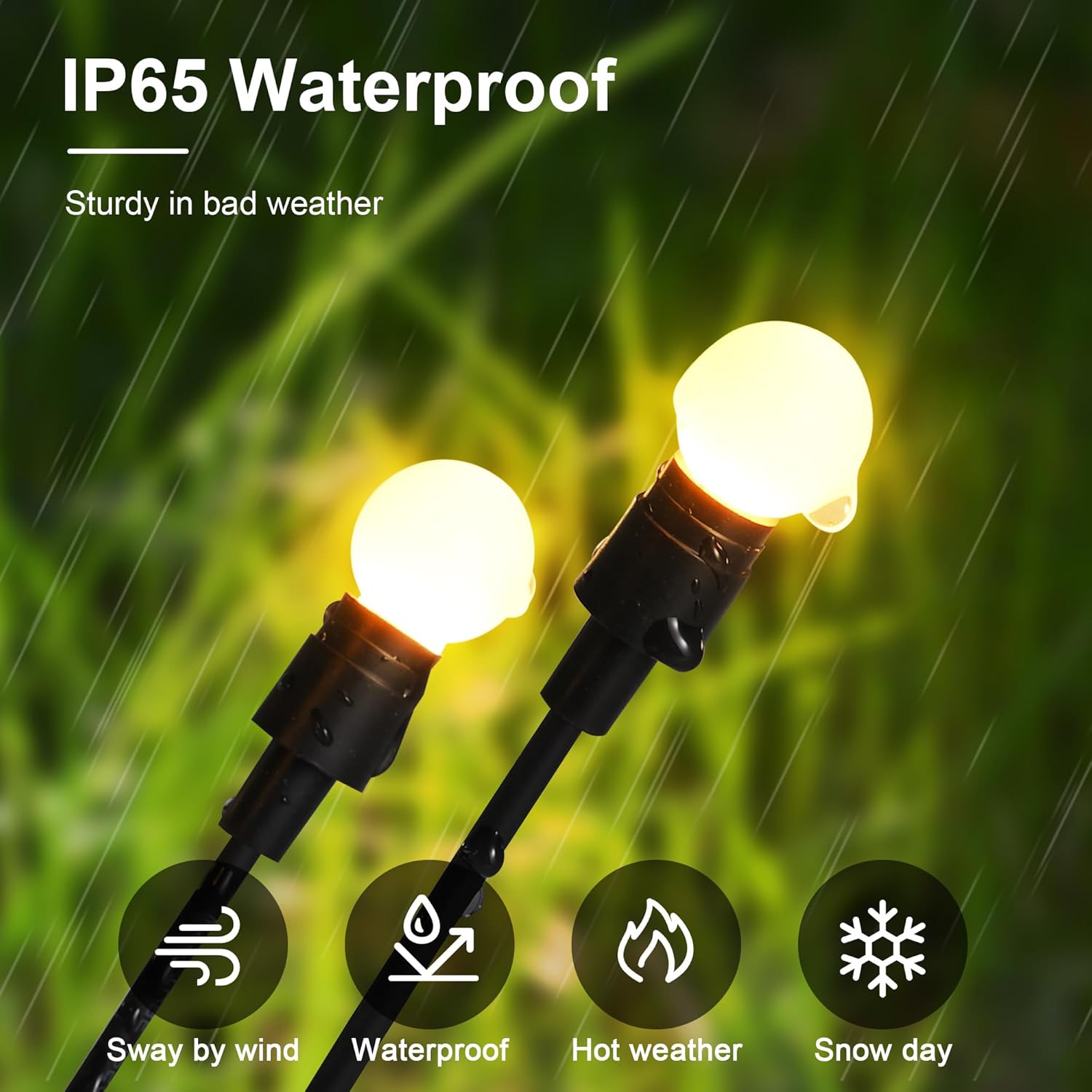 • ● 【IP65 Waterproof & Durable】The IP65 solar lights outdoor waterproof with a large 600mAh battery capacity, which can withstand any extreme weather condition,our solar fairy lights can illuminate your garden all night long, even on rainy days, you can enjoy your lights all year around.