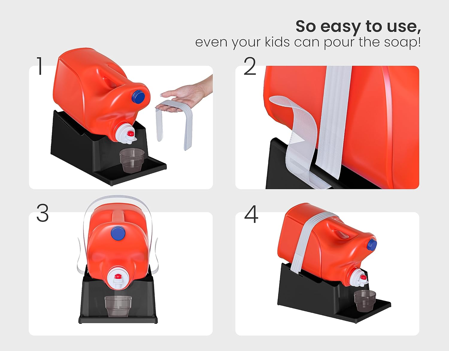 • [Safe Attachment:] The laundry detergent shelf or holder features a secure strap that firmly attaches and ensures your detergent bottle stays in place and minimizing the risk of accidental falls and spills.