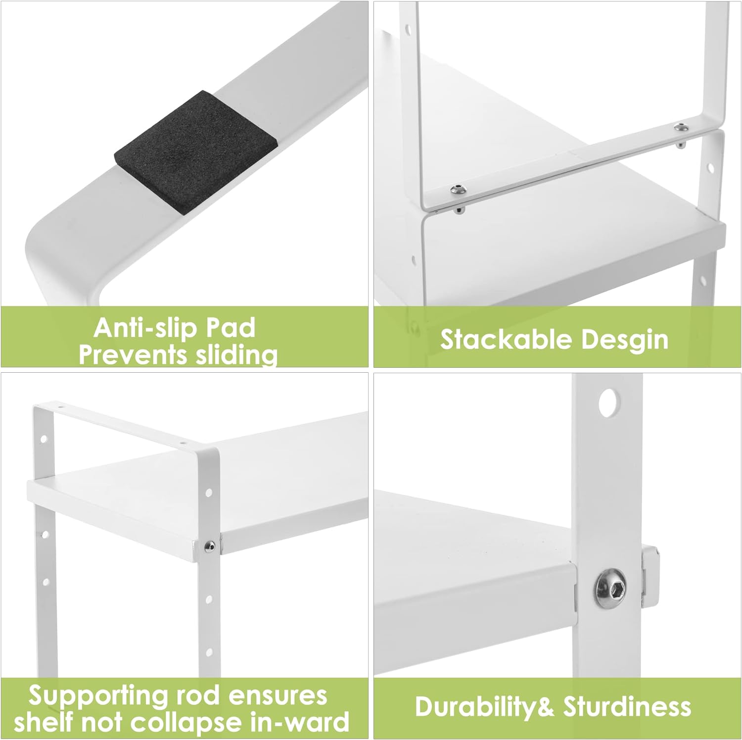 • Easy to Install: Comes with accessories and step-by-step instruction, it will be easy for you to install this storage shelves , no drilling needed! We use non-slip suction feet to prevent the countertop organizer from sliding the table.