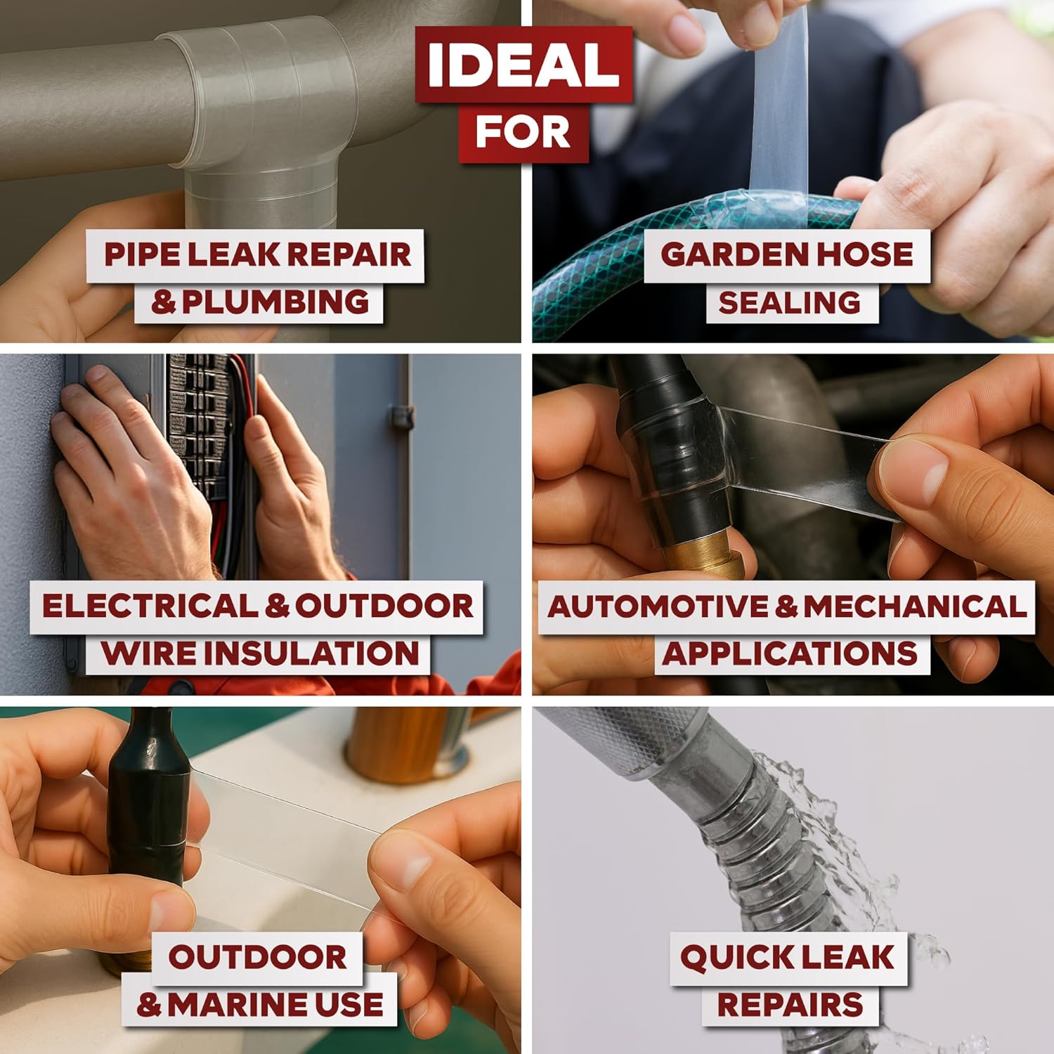 • VERSATILE. It can also be used as a silicone grip tape and as an outdoor coaxial cable sealer, as it is waterproof and can resist 600V. This pipe repair tape to stop water leaks is perfect as an emergency tape for quick repairs of hoses and pipes.