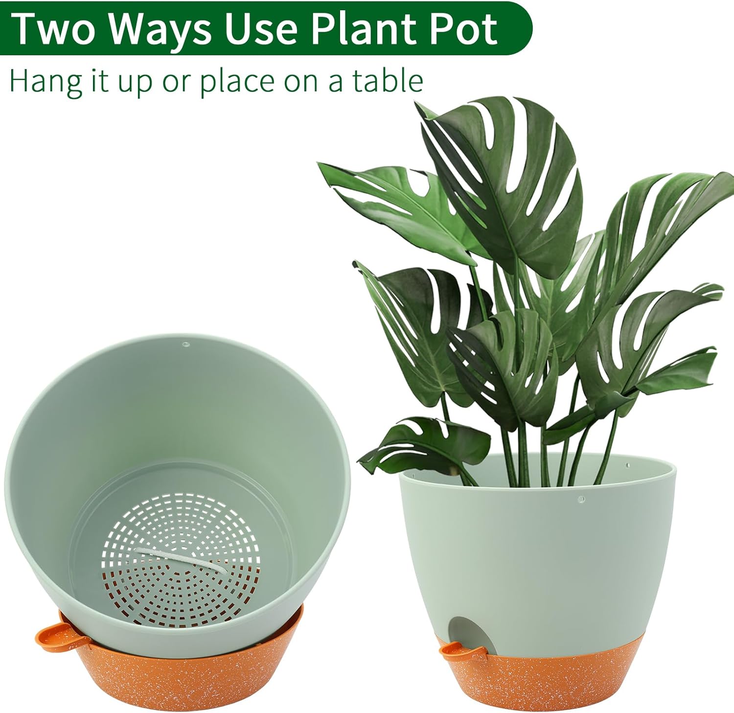 GARDIFE Large Hanging Planter, 12 inch Hanging planters for Indoor. Outdoor Plants, Self Watering Plant Pot, Plant Hanger, Green
