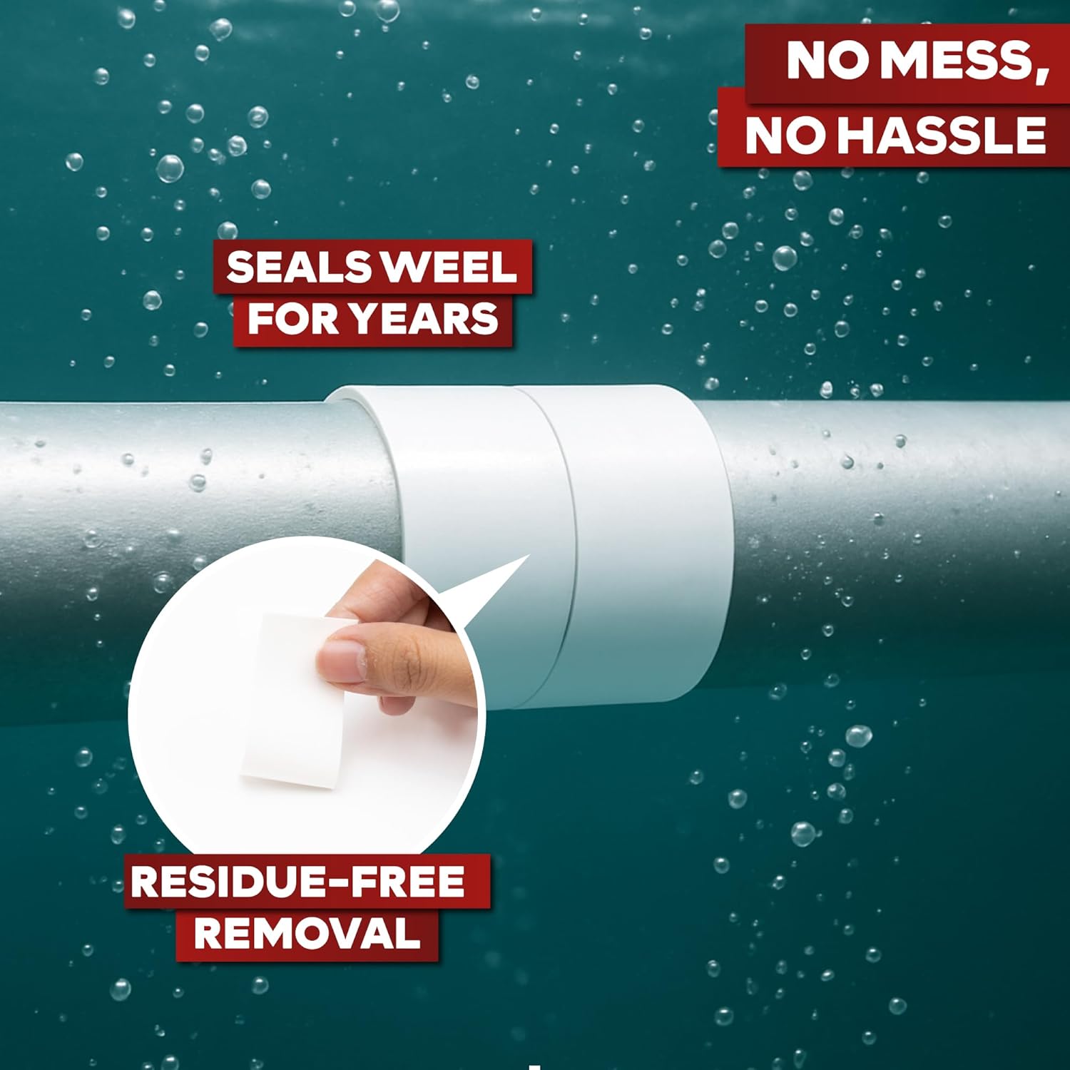 • HEAVY-DUTY REPAIR. Our pipe tape is rated to last for up to 10 years, withstanding pressures up to 1,300psi and extreme weather. This silicone tape plumbing resists UV, making it ideal for outdoor use.
