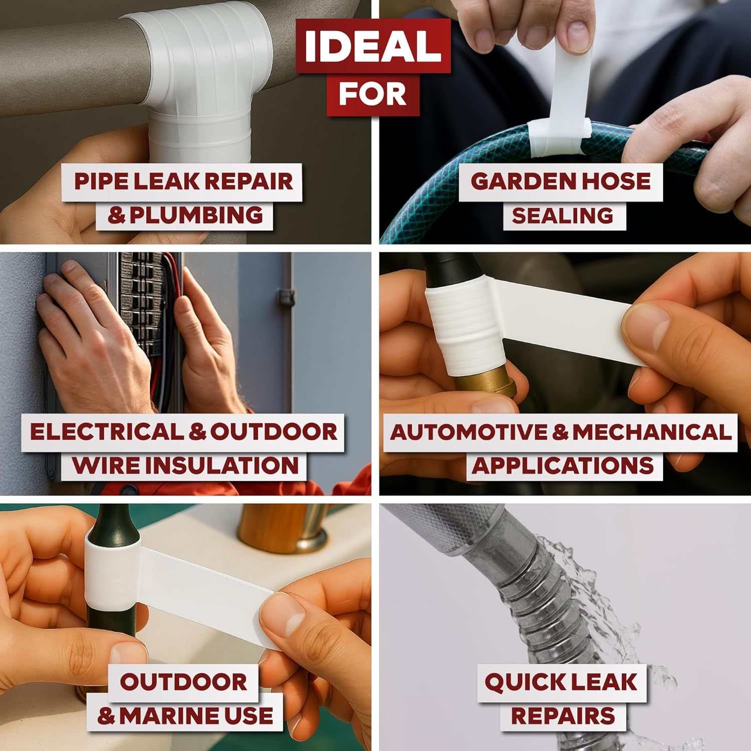• VERSATILE. It can also be used as a silicone grip tape and as an outdoor coaxial cable sealer, as it is waterproof and can resist 600V. This pipe repair tape to stop water leaks is perfect as an emergency tape for quick repairs of hoses and pipes.