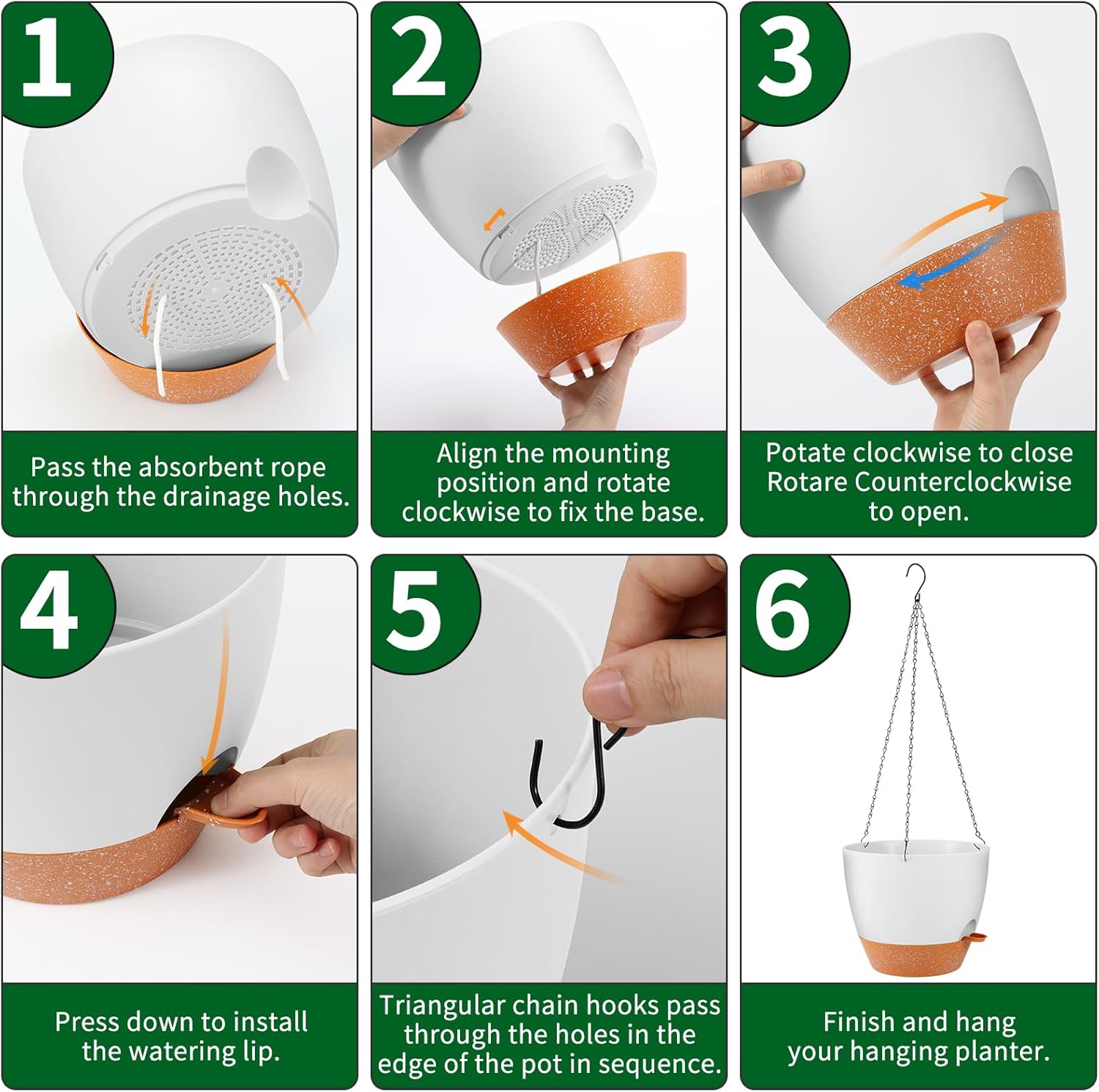 GARDIFE Large Hanging Planter, 12 inch Hanging planters for Indoor. Outdoor Plants, Self Watering Plant Pot, Plant Hanger, White