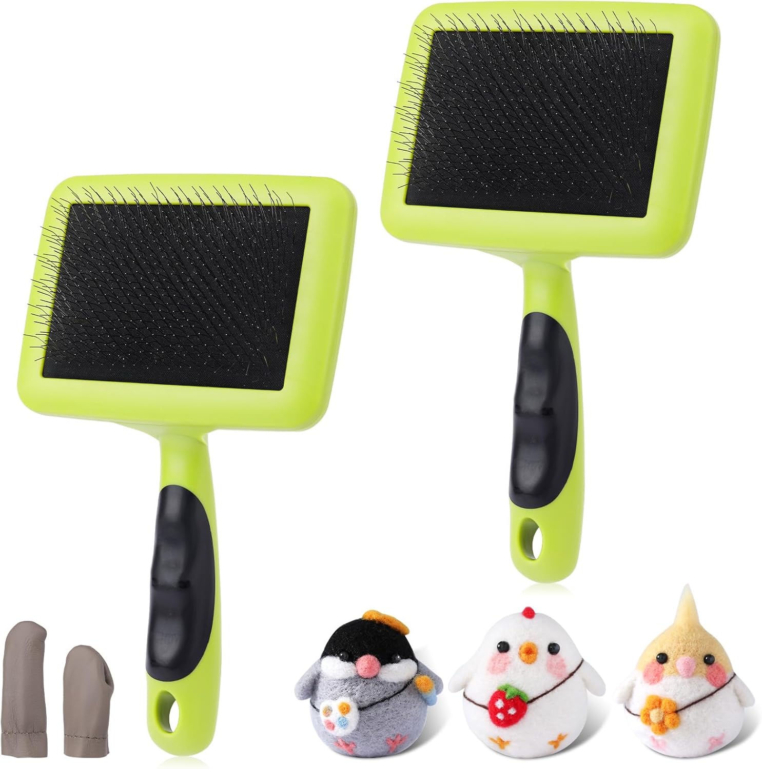 • 2 Pcs Plastic Wool Carders: Includes 2 large plastic wool carders and a pair of finger cots. Perfect for fluffing wool, blending colors for wool needle felting projects, and gentle pet grooming. An essential felting supplies tool for needle felting and pet gromming