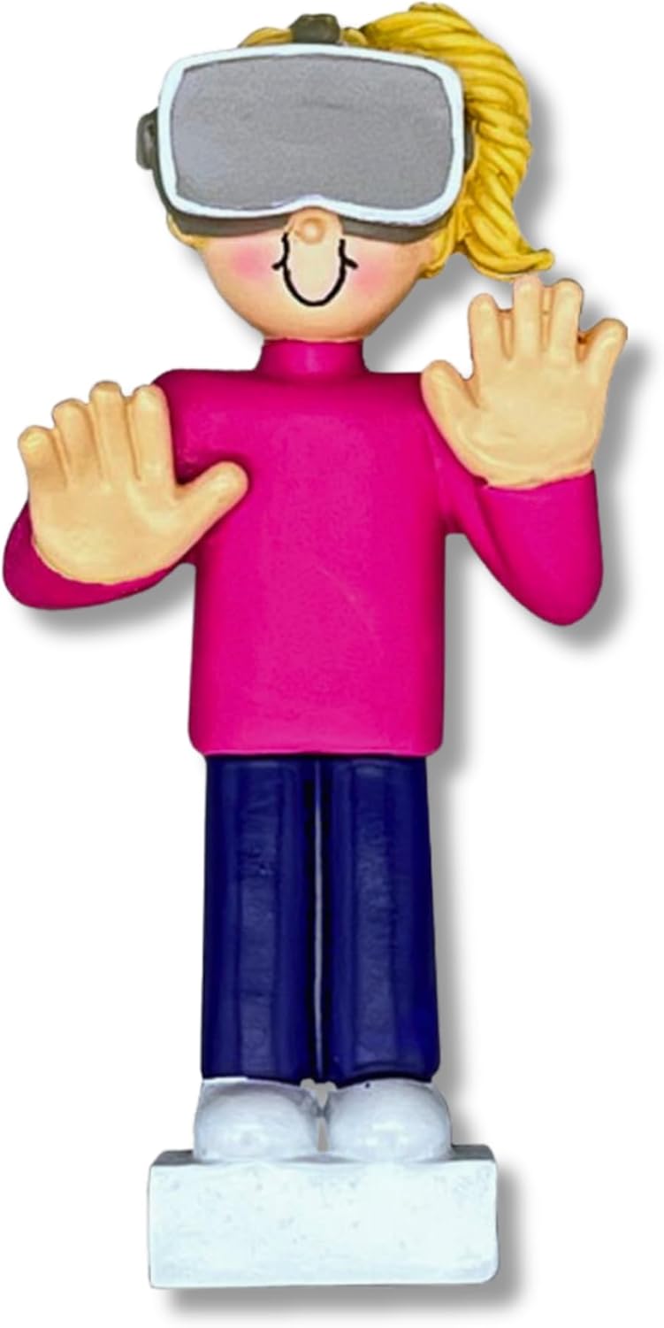• DECORATIONS: Make your Christmas or special occasions more immersive with the Virtual Reality Female Blonde ornament. It adds a touch of technology to your decor.