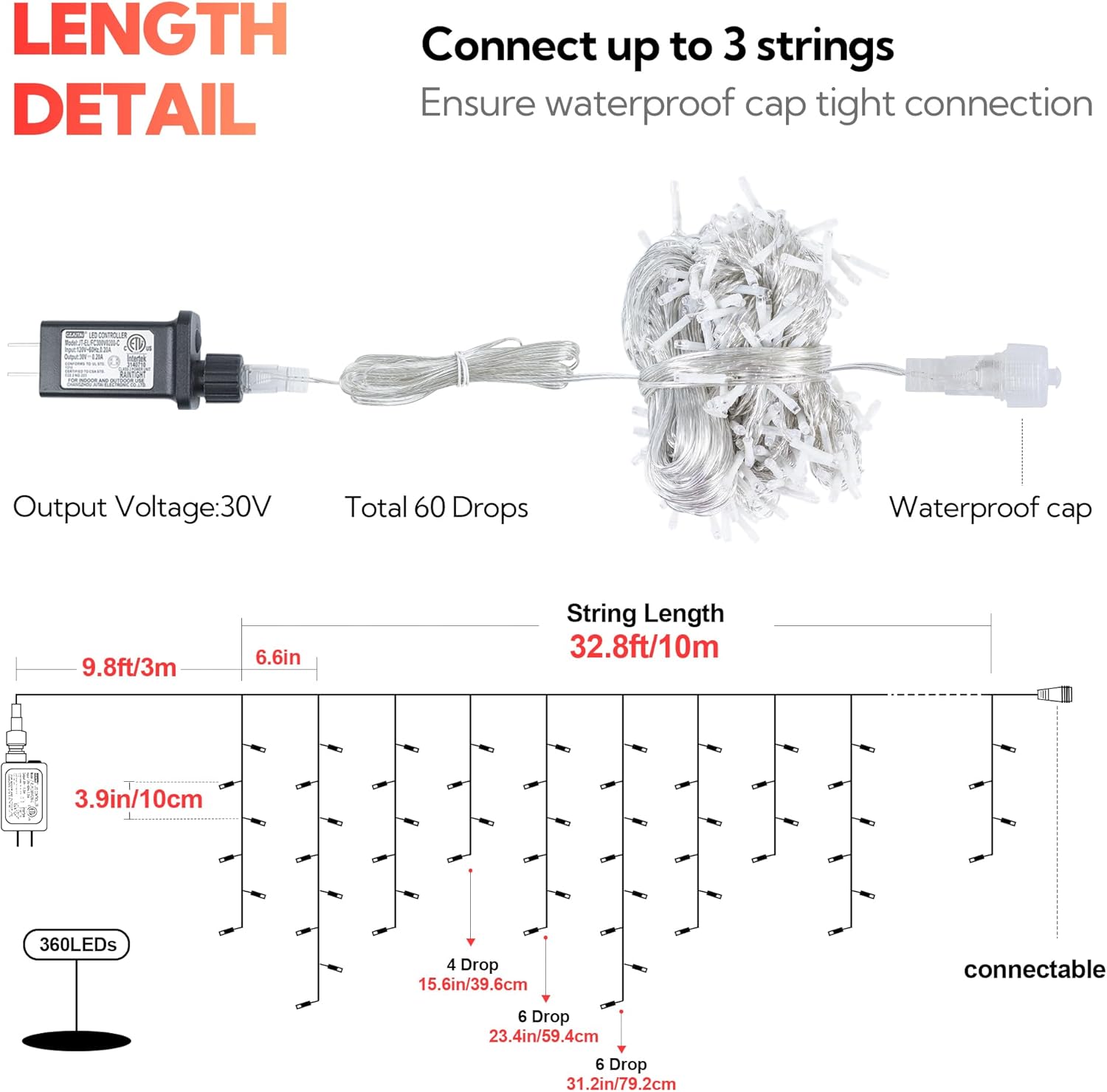• 💝【Excellent After-Sales Service:】:Christmas icicle lights are carefully inspected before selling, so you can buy with confidence. If you have any questions or problems about our products, please feel free to contact us, we will solve the problem for you at the first time. Hope you can have a pleasant shopping experience!