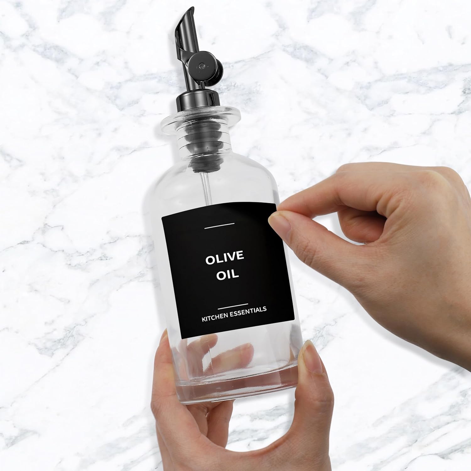 • Includes 55 Sticker Labels — Customize your glass oil dispenser thanks to the complimentary 55 waterproof and oil proof sticker labels made from PVC. Each label is minimalistic and clearly shows the contents of the bottle for convenience and decor.