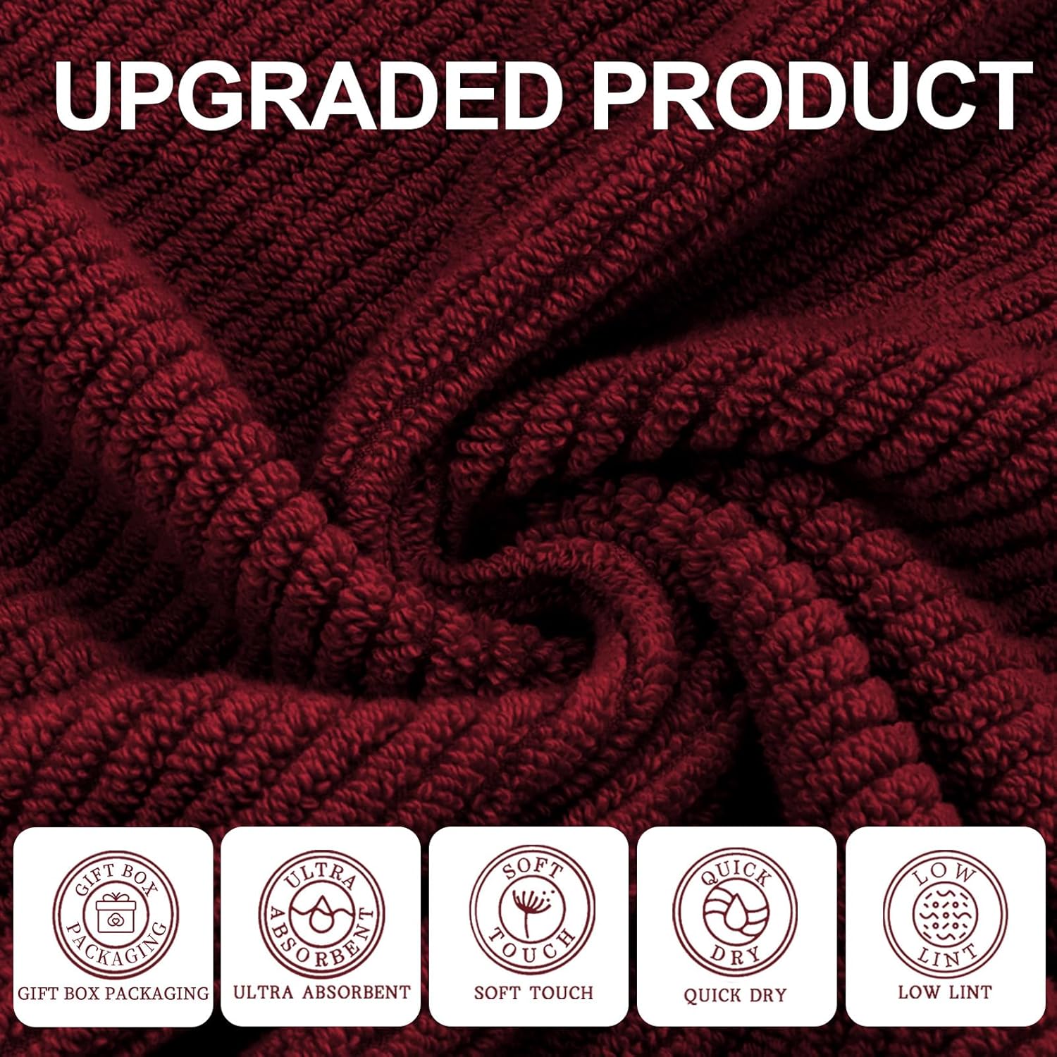 VOOVA & MOVAS Red Bath Towels, 4 Pack Large 30" x 56" - 100% Cotton | Quick Dry | Light Weight | Thick | Soft | Absorbent, Bath Towels Set for Bathroom, Bathroom Decor Set, Burgundy Red