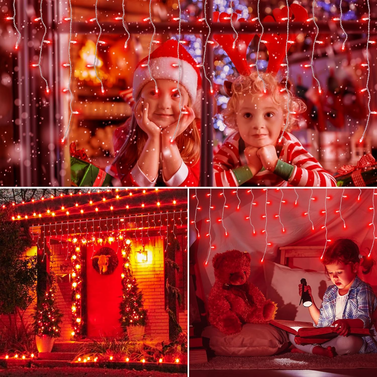 • 【End To End Connectable】🎁Each red Icicle Lights Outdoor can be End-to-End connected. Up to 5 sets and lighting cover large area be extended to 164ft.This length equipped with 25pcs cable tie,you can decorate any occasions very easy: indoor and outdoor, Christmas tree, party, Valentine's Day, wedding, window, roof, balcony, kitchen, wall, Holiday, restaurant, hotel etc.