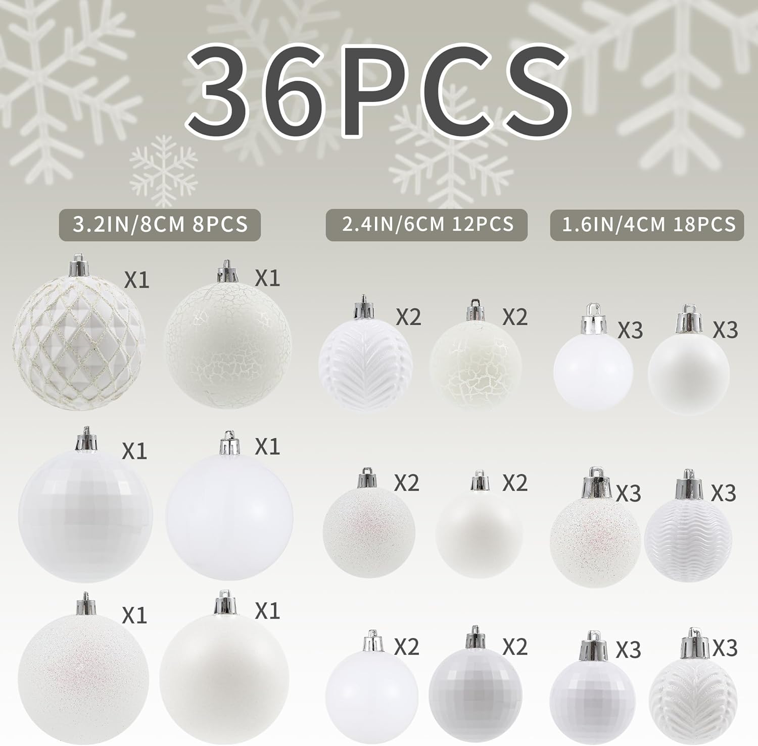 LANGXUN 36pcs White Christmas Tree Decorations Balls, Bolas De Navidad, 2025 Christmas Decor, Indoor Outdoor Shatterproof Christmas Ornaments, Xmars Party Wedding Suppiles