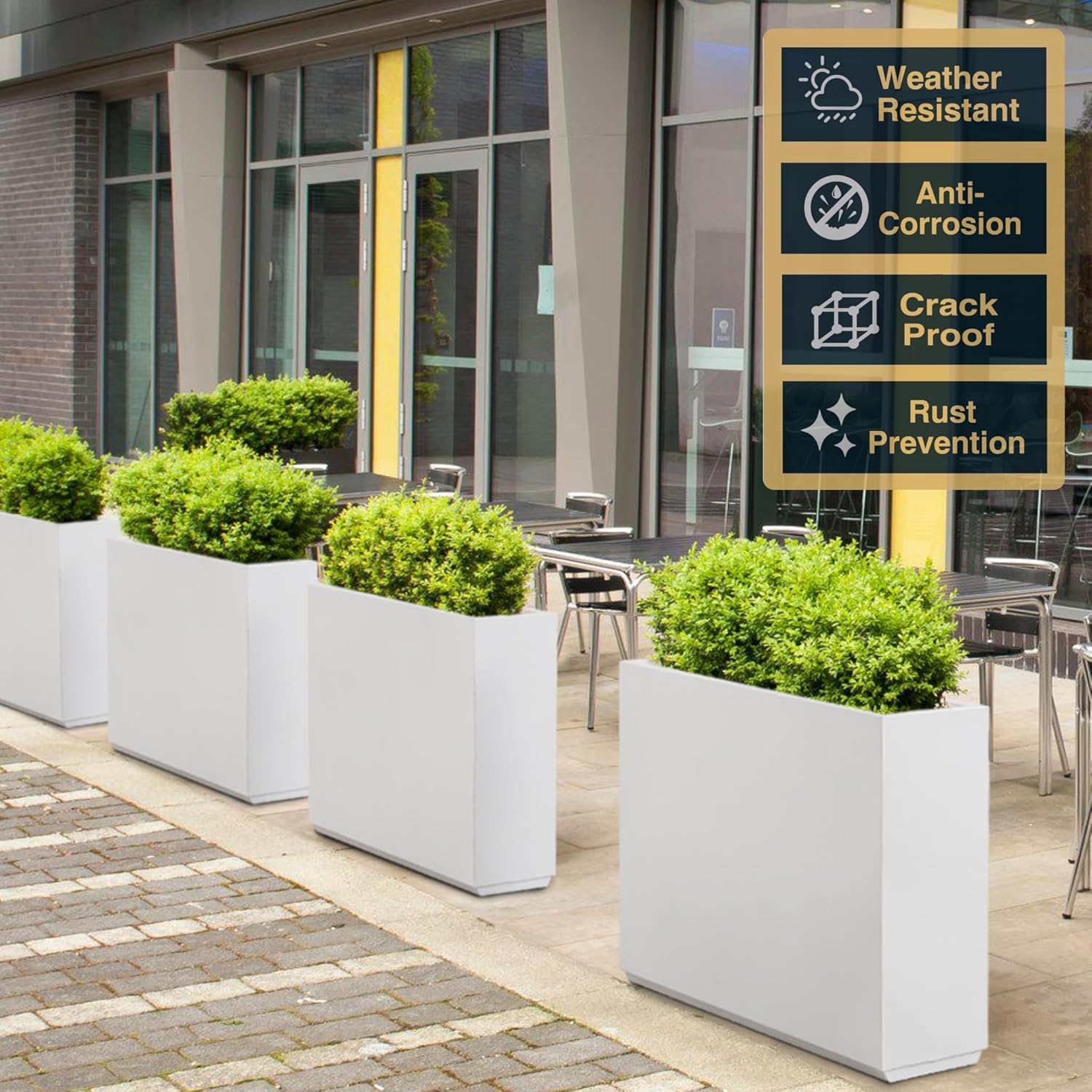 Metallic Heavy Planter for Outdoor Plants, 38Lx10Wx30H Inches Tall and Long Metal Divider Planter Box with for Outside & Indoor, Seamless (White)