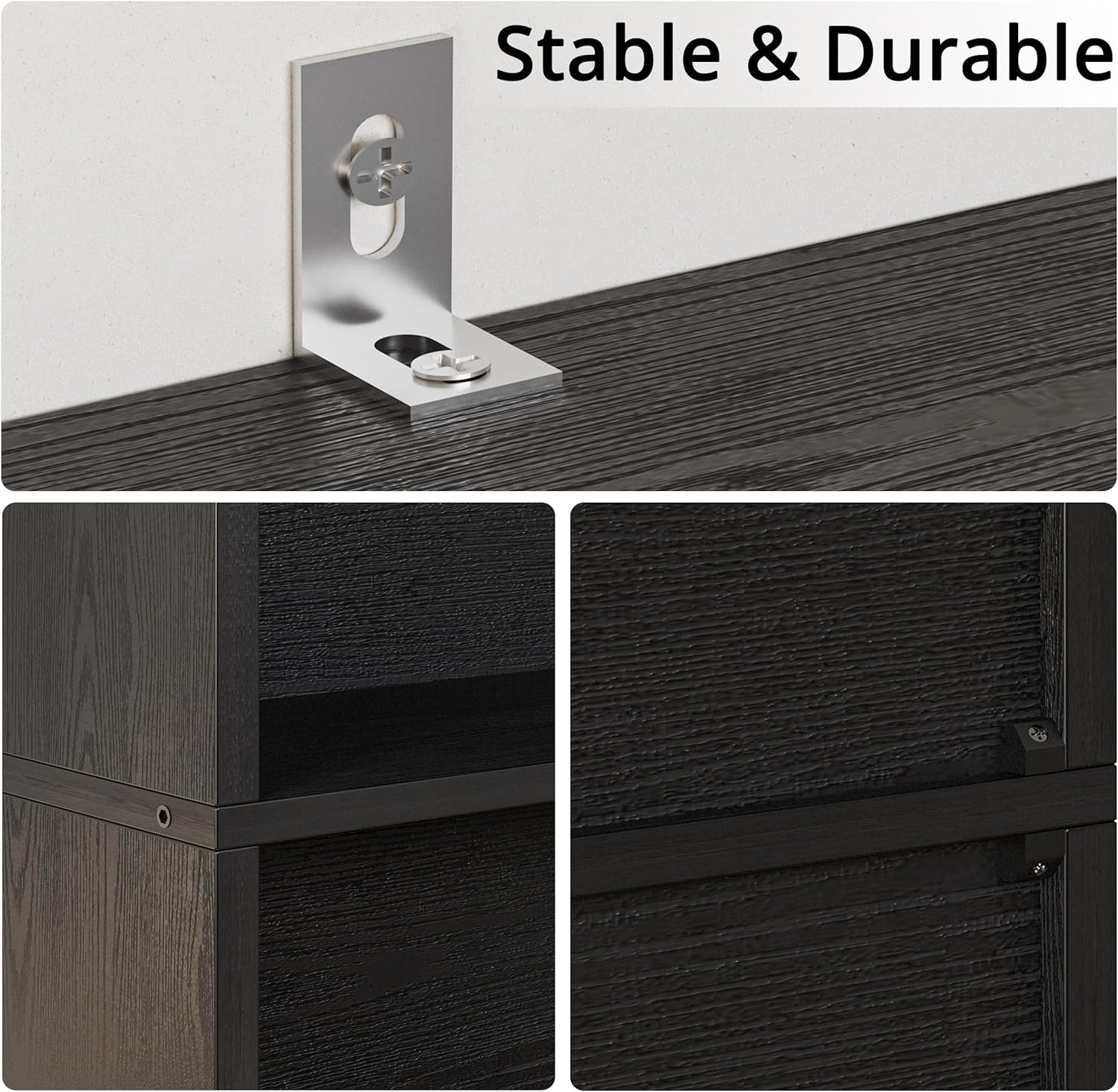 • Stable Construction: With strengthen screws and the tipover resistance device, the bookcase is more stable