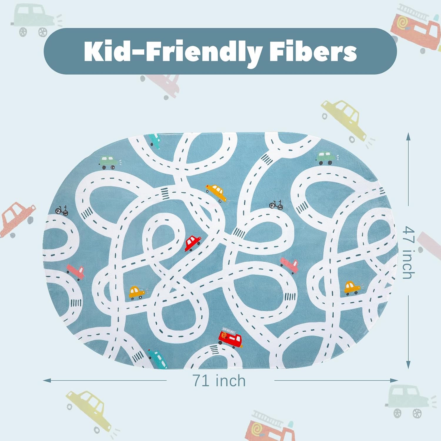 • Funny Car Mat for Kids: Designed with classic road and car patterns,the game rug offers a paly area to children. With creative traffic elements, young children can host many exciting games.