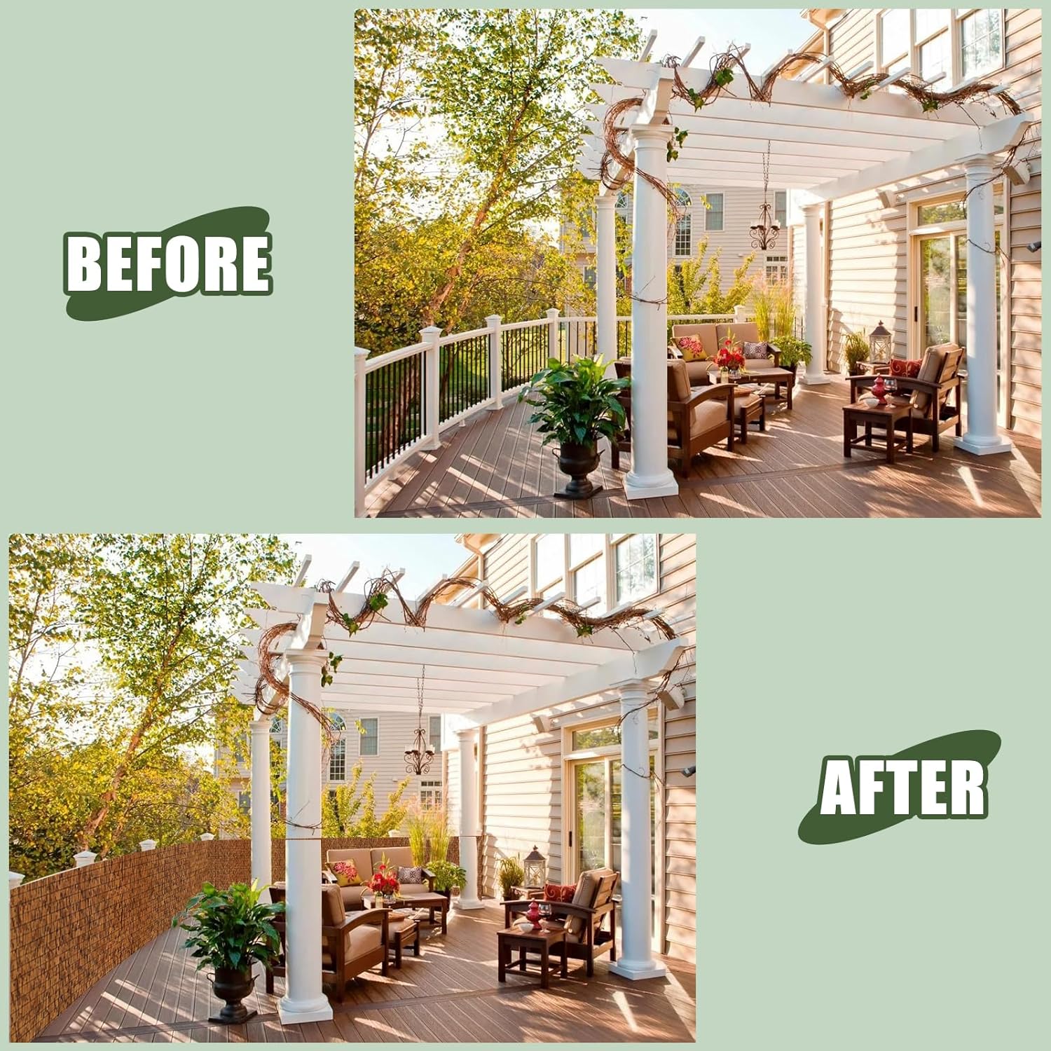 • 【More Shade and Privacy】Reed fencing is also ideal for creating privacy around pool areas, decking and verandahs, or simply to create a private little corner in your garden where you can relax away from prying eyes