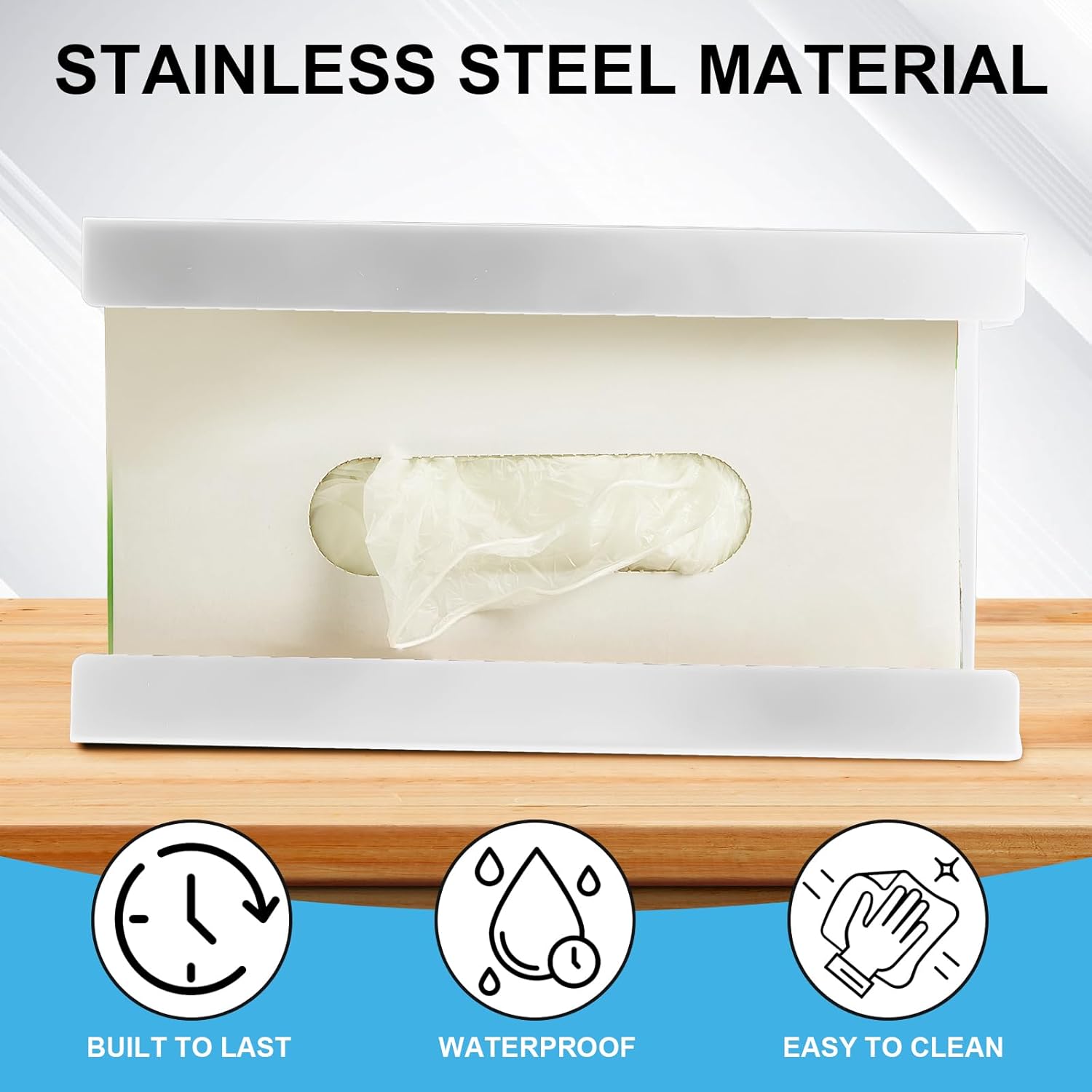 • Flexible Storage: kitchen glove holder has a self adjusting spring, which can accommodate boxes of different sizes to meet your use needs, but the premise is that the width of the box is between 10-15 cm and the depth is no more than 9.8 cm, you can refer to the size information of the picture before purchase to avoid misunderstanding