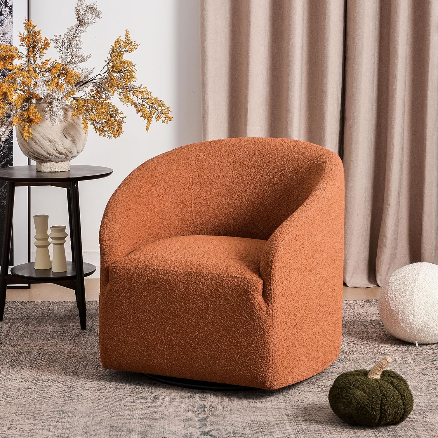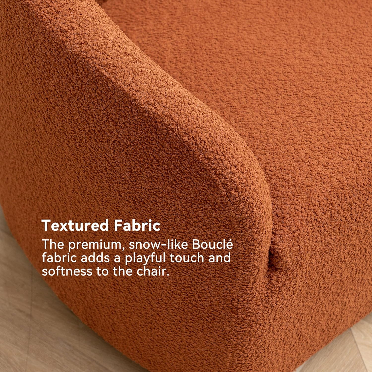 KINWELL 32" Wide Swivel Boucle Accent Chair Armchair, No Assembly Mid-Century Modern Round Upholstered Barrel Chair for Living Room, Bedroom, Office (Caramel)