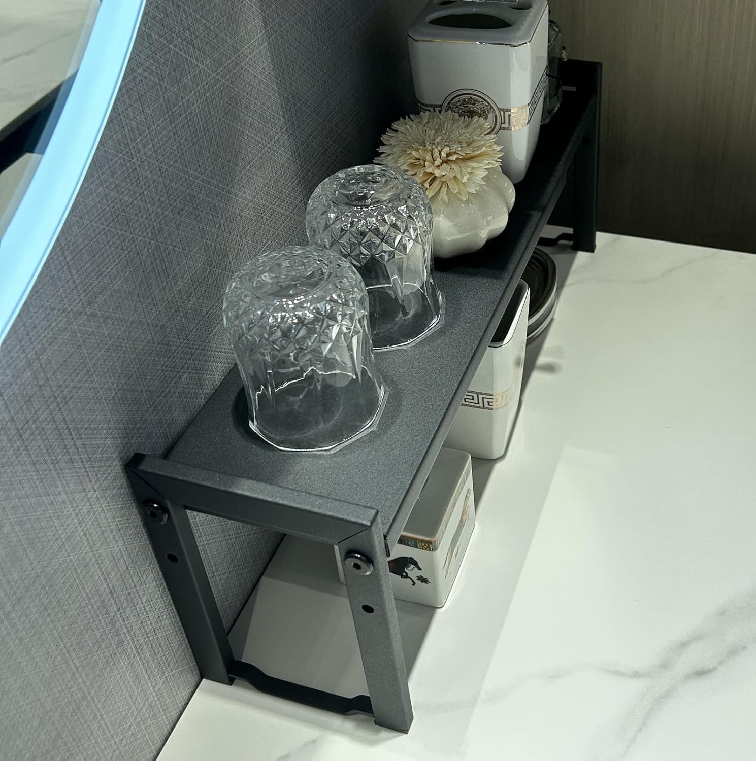 • Versatile Space Optimizer: This expandable metal shelf organizer, crafted from sturdy metal with a sleek satin finish, adjusts from 16-26 inches (L), 5.1 inches (D), 7.3 inches (H), making it an excellent space - saving solution for your kitchen counters, bathrooms, office desks, or any compact area