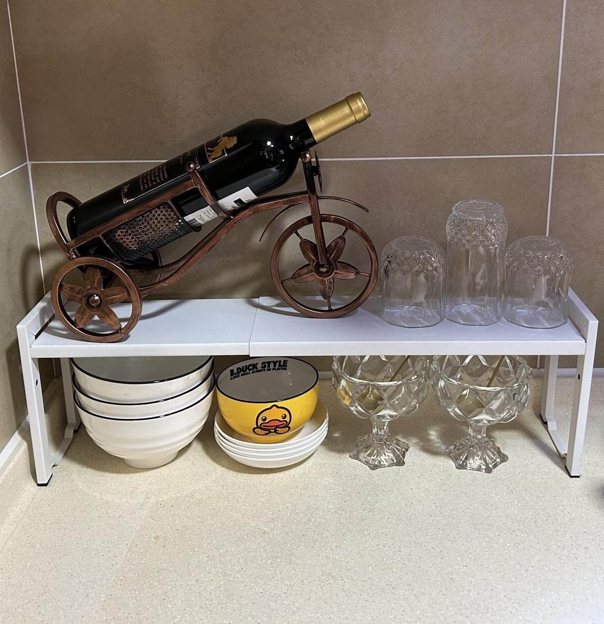 Expandable Cabinet Shelf Organizer 16-26" L Stackable Kitchen Counter Shelf Rack Stand Sink Riser Countertop Storage White (Narrow 5.1”D)