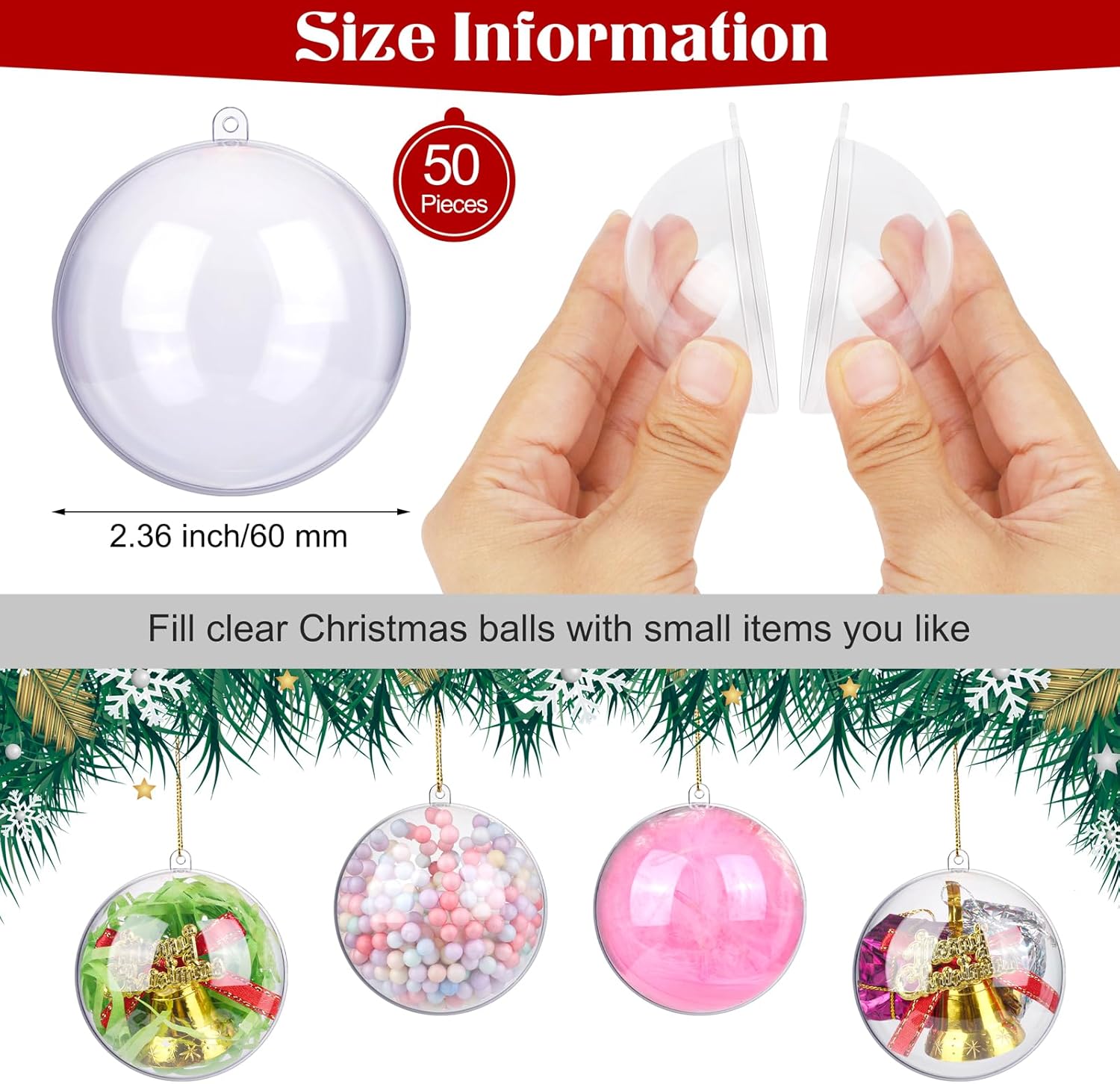 ANVAVO 50 Clear Plastic Fillable Ball Ornaments - DIY Craft Transparent Baubles - Shatterproof Christmas Tree Hanging Ornaments for Christmas, New Years, Birthday, Wedding, Home Decor