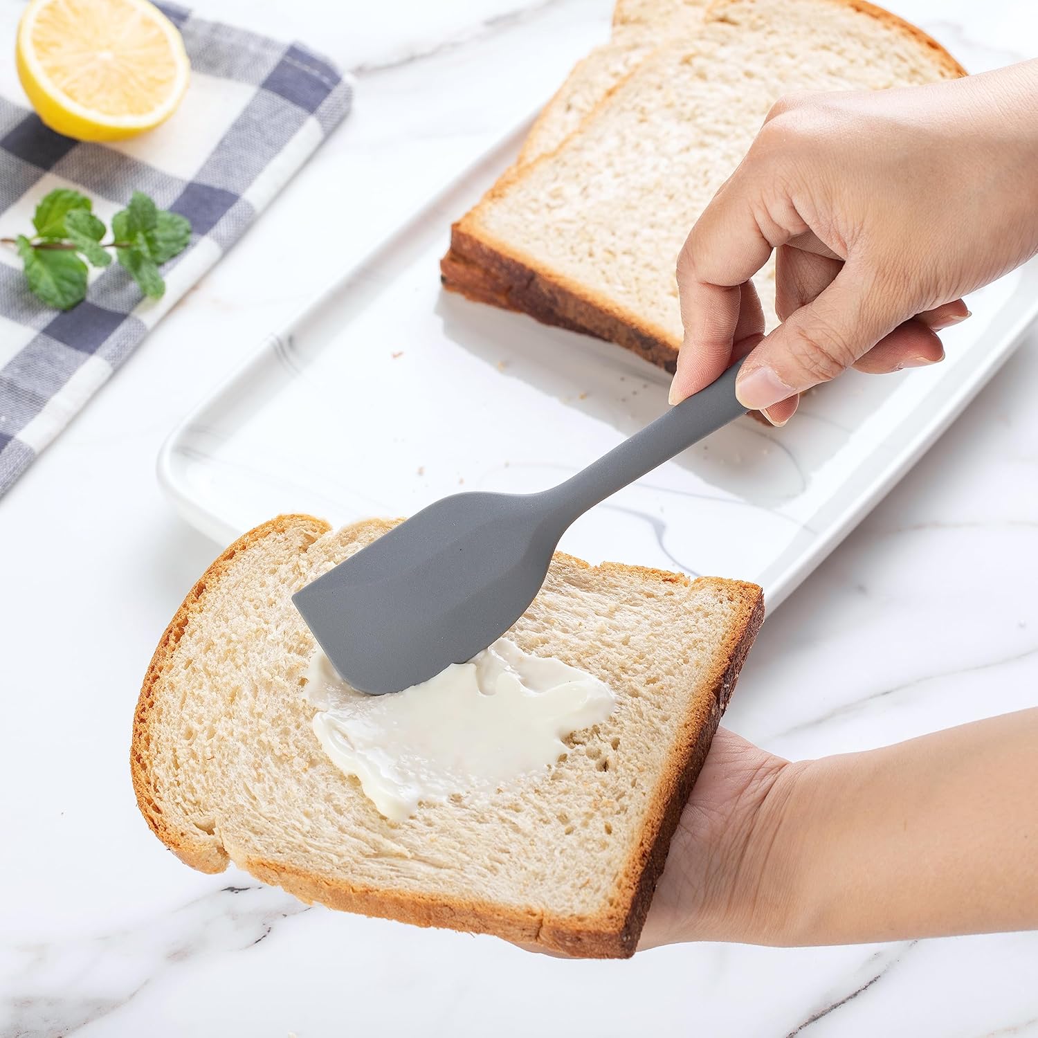 • Safe to use with nonstick bake-ware, pots and pans to avoid scrapes and scratches. Flexible yet sturdy silicone utensils that are reinforced within and made to last. Silicone allows for less build up and mess and is easier to clean and wash. Hand wash with warm soapy water.